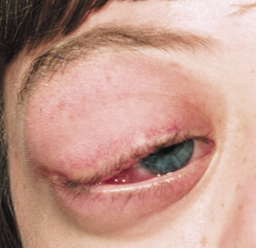 Like Lisch nodules of the iris, pigment epithelial hamartomas may affect the choroid. In one series, flat pigmented lesions of the choroid were found in 35% of patients with NF1. Fluorescein angiography suggests these are choroidal nevi.45The entire uveal tract may be thickened by a diffuse neurofibroma, thought to be hamartomatous hyperplasia of Schwann cells. This may result in the development of glaucoma.46,47 Retina. Retinal involvement in NF1 is unusual. Astrocytic hamartomas (similar to those in tuberous sclerosis), retinal capillary hemangiomas, and combined hamartoma of retina and retinal pigment epithelium (RPE) occur.48,49 EYELID AND ORBIT. Orbital neurofibromas may arise from any nerve in the orbit, especially the trigeminal nerve.50 Classically the triad of visual loss, optic atrophy and optociliary shunt vessels have been associated with optic nerve sheath meningiomas,51 but these findings may be nonspecific for optic nerve compression,52,53 particularly in children. If a child with a presumed diagnosis of NF1 is found to have an optic nerve meningioma, NF2 should be considered. The eyelids are frequently involved in NF1. The lateral portion of the upper lid is prone to develop a plexiform neurofibroma, producing a sinusoidal or S-shaped deformity of the lid margin.54–56 Amblyopia develops from ptosis and astigmatism (Fig. 4).