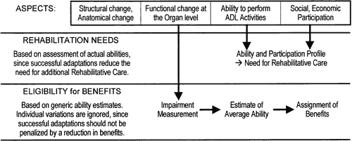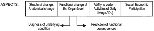 Classification of Impairments, Disabilities and Handicaps (ICIDH).2 The aspects are distinct, although different publications may use slightly
