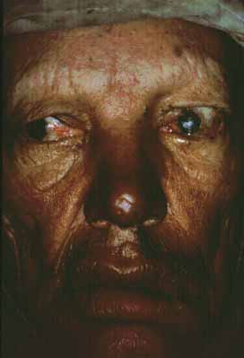 the world. The worldwide distribution of leprosy does not parallel patterns of ocular complications seen in the disease, which is influenced by type of leprosy, age distribution, implementation of multidrug therapy (MDT) in the area, socioeconomic status, and eye care services available to patients.16 The available data on ocular leprosy and its complications rely almost exclusively on institutionalized patients. These data, therefore, include mainly the more advanced cases with serious debilities but rarely include earlier and milder cases living in their own communities. A worldwide study on ocular complications of leprosy has revealed blindness caused by leprosy in 3.2% and grade 2 visual disability in 7.1% of the sample analyzed.17 There are approximately 1.5 million patients with leprosy undergoing MDT treatment and another 10 million have completed and been released from MDT treatment. It is estimated that 1.5% to 2% are blind from leprosy-related causes and another 2% are blind from nonleprosy causes, mostly age related cataracts (defined as vision less than 20/400 [3/60] in the better eye; the metric equivalent is given after Snellen notation).18,19 Major causes of blindness in this group include corneal opacity from exposure, iridocyclitis and its sequelae, and cataract. Because these causes may be considered in other categories of blindness (e.g., cataract is recognized as a major worldwide blinding condition), leprosy is largely ignored in blindness prevention efforts. Yet, this group of patients is clearly at high risk to have an avoidable blindness whatever the cause. The apparent susceptibility of persons to infection and the expression it takes varies according to the gender, race, and geographic distribution of the involved population. The disease occurs in clusters and in families, probably because of shared environment, genetics, and contact. A history of prolonged exposure to the disease is common in new cases. Within families, the disease is spread by untreated lepromatous cases where the attack rate among the spouses is 5% to 10%.20 Among young children exposed to untreated lepromatous cases, 30% to 50% develop a mild episode (usually a single lesion) that heals spontaneously.21 Documented cases in previously healthy adults (e.g., exposed medical personnel) are uncommon. In most prevalence studies, males outnumber females by 2:1 or 3:1,22–26 but this may represent a reporting bias instead of an increased male susceptibility. Race or climate also appears to be important in determining the disease pattern. Prevalence studies suggest that lepromatous leprosy is more common in the temperate climates of Asia, South America, Northern India, and Nepal,27 while tuberculoid leprosy is more common in tropical central Africa.28,29 However, racial differences may play some role in this differing distribution. Some workers believe that the Mongolian races are more susceptible to lepromatous leprosy and that climate plays a less important role.30,31 The diffuse form of lepromatous leprosy with skin ulcers (Lucio reaction),32 which occurs principally in Mexico, has been cited as an example of genetic influence. Ocular involvement and blindness differ according to the type of leprosy. In lepromatous leprosy, there is a higher rate of intraocular complications, particularly in the various forms of uveitis.33,34 Patients with tuberculoid leprosy, on the other hand, have more problems of the outer eye such as lagophthalmos, exposure keratitis, and corneal opacities.21,28 A study in Egypt, however, indicated a higher rate of intraocular disease (uveitis) than expected in patients with long-term tuberculoid leprosy.35 Although a great deal of data has been collected on leprosy and to a lesser extent on ocular leprosy, caution should be used in comparing the data because of the vast differences in reporting, examination techniques, equipment used, and background and training of the observers. Ocular involvement has been reported in 6% to 90% of patients, and some workers believe that all leprosy patients eventually develop eye diseases.28,36–39 Estimates of blindness among patients with leprosy also vary. For example, a study of 466 patients with leprosy in Nepal revealed that the prevalence of blindness, defined as a visual acuity of less than 20/200 (6/60), depended on the duration and type of disease. Of patients with leprosy of less than 10 years' duration, 8.3% were blind, but of those who had had leprosy more than 20 years, 30% were blind.40 Data on blindness in patients with Hansen's disease are notoriously incomplete and often unreliable. There simply are many problems in obtaining representative population-based estimates. |