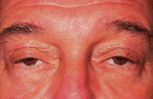 Oculopharyngeal muscular dystrophy is a disorder characterized by progressive atrophy and weakness of the hypopharyngeal and ocular muscles. The disorder results from a mutation of the PAB2 protein that binds to messenger ribonucleic acid (mRNA).21 It usually presents in the third to fourth decade with dysphagia or regurgitation of food resulting from lack of coordination of the pharyngeal muscles. The dysphagia can progress to intolerance of liquids and the patient is at risk from aspiration pneumonia and death. Surgical intervention such as cricopharyngostomy is sometimes necessary. The dysphagia usually precedes the ptosis by several years. The ptosis observed is bilateral, but usually asymmetric, and the extraocular muscles may also be involved. Other rare causes of myogenic ptosis include Guillain-Barré syndrome or iatrogenic botulism. Injection of botulinum toxin for the treatment of rhytids or blepharospasm may result in a temporary ptosis usually lasting a few weeks. Correction of acquired myogenic ptosis can be difficult, because most patients with myogenic ptosis have a progressive disease making the surgical outcome unpredictable. These patients are at increased risk for complications following ptosis surgery because of poor eye-protective mechanisms (EPMs) including inadequate blink, poor Bell's phenomenon, and consequently exposure keratitis. The surgical approach is most often based on the amount of levator muscle function present, and the patient is instructed on the potential variability following surgical correction. This is discussed in further detail later in the chapter. Mechanical Acquired Ptosis Mechanical acquired ptosis is seen with any abnormality that results in pulling down of the upper eyelid resulting in ptosis despite normal muscular function. This could include dermatochalasis, tumors of the lid or orbit, chalazion, postsurgical or traumatic edema, a lost contact lens in the superior fornix, or a scar.23 Eliminating the mass effect of the lesion usually alleviates mechanical ptosis. Traumatic Acquired Ptosis Traumatic acquired ptosis of the upper eyelid can result from blunt or sharp injury usually to the LPS muscle or the levator aponeurosis either by trauma or surgery. If the insult is traumatic, the underlying etiology may be myogenic, neurogenic, mechanical, cicatricial, aponeurotic, or even a combination of these. Exposure of orbital fat in the upper eyelid after injury typically demonstrates violation of the orbital septum. In this case, the upper eyelid should be explored for possible injury to the levator muscle and repaired at this time. Posttraumatic or postsurgical ptosis often results following orbital, ocular, and neurosurgical procedures. It is important to initially observe these patients without surgical intervention, because acute factors such as hemorrhage, neuropraxia, and edema are temporary. Spontaneous resolution or improvement often occurs in these patients over the course of 6 or more months. Surgical repair of patients with traumatic ptosis is highly variable based on the etiology of the injury and existing elevating power of the upper eyelid. Pseudoptosis Pseudoptosis should be differentiated from true blepharoptosis. Various conditions may make an upper eyelid appear low, including a hypertropia on the contralateral side, enophthalmos, microphthalmos, anophthalmos, blepharochalasis, phthisis bulbi, dermatochalasis, or a superior sulcus defect secondary to trauma or cicatrix. In addition, widening of the palpebral fissures on the contralateral side can give the appearance of pseudoptosis and may be due to eyelid retraction from Grave's disease, axial proptosis, congenital eyelid retraction, or high myopia. Pseudoptosis is often manifested in aging patients as a result of redundancy and laxity of the skin and tissue of the upper eyelid and brow. In evaluating eyelid ptosis, it is important to distinguish the independently functioning units of the eyebrow, redundant eyelid skin, and the elevating power of the eyelid. In brow ptosis, recruitment of the frontalis muscle is needed to elevate the eyebrow and eyelid. Relaxation or fatigue of the forehead muscles that can be elicited during examination will manifest the brow ptosis and may induce mechanical ptosis of the eyelid. Dermatochalasis, a commonly seen condition, in which excess skin overhangs the eyelid margin, can also cause a mechanical pseudoptosis or a secondary ptosis. This “hooding” effect can be corrected during the examination by manual elevation of the redundant eyelid skin, allowing visualization of the true palpebral aperture. In brow ptosis and dermatochalasis, the levator muscle function is usually intact. Surgery to correct brow ptosis requires a brow lift, and correction of dermatochalasis requires blepharoplasty not ptosis surgery. In aging patients especially, involutional ptosis can occur in conjunction with brow ptosis or dermatochalasis, in which case ptosis surgery is indicated. Each factor plays an important role in the symptomatic ptosis patient and should be individually examined and recognized. |