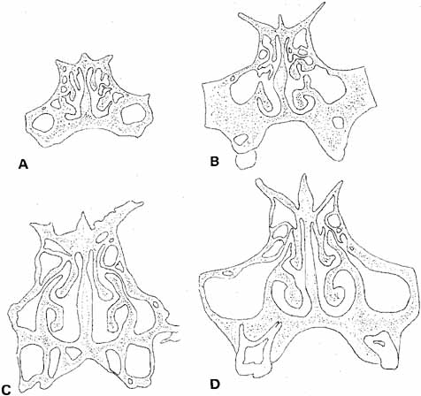INTUBATION MATERIALS. For many years, bicanalicular Silastic intubation has been the gold standard for secondary treatment of failed probings.68 Silastic tubing comes packaged in several ways. The important features to consider in choosing a packaged set for nasolacrimal intubation are that the metal probe be malleable enough to minimize the trauma to the nasolacrimal system and that the tubing be bonded sufficiently to the probes to avoid slipping during passage through the system. Free tubing can be loaded onto a Quickert probe and passed. Tubing (Silastic, Dow Corning, New York, NY; tubing 5941, Storz, St. Louis, MO) of 0.025 mm external diameter is preferred for pediatric and adult use. The tubing can be glued in place with silicone bonding glue. It is stretched over a number 0 tapered probe (Quickert 4220, Storz) before autoclaving. Packaged intubation sets like Crawford Silastic set (28–0185; hook, 28–0186, Jedmed Instrument Co., St. Louis, MO), O'Donoghue lacrimal tubes (Visitec, Sarsota, FL), and Guibor lacrimal tubing also are available. They are more expensive, but avoid the need to prepare the probes with tubing. In 1988, monocanalicular intubation sets became available (Monaka tubes). Fayet and co-workers69 developed and studied the success rate of monocanalicular stenting. His group showed a similar success rate between bicanalicular stenting and monocanalicular stenting. Kaufman and co-workers70 had a 79% overall success with monocanalicular stenting. At Children's Hospital of Philadelphia, we had a 91% success rate in our first 35 cases71 and then proceeded to coleect a prospective series of 101 patients which indicated a 93% success rate.72 The use of monocanalicular stenting has become our preferred method of placing Silastic tubing during a probing and irrigation. It effectively stents the system like bicanalicular stents but has two major advantages. First, monocanalicular stents self anchor in the puncta, thus only one canaliculus is subjected to probing and potential injury. Second, these stents can easily be removed in the office without the need for a general anesthetic. TECHNIQUES OF INSERTION. Passage and retrieval of the probes may be difficult. It is important to recognize that intubation of the nasolacrimal system requires the physician to negotiate several right-angle turns, particularly when entering through the lower canaliculus. Furthermore, as the probe emerges near the floor of the nose, it can be difficult to withdraw, especially in the young child. This problem occurs because the inferior meatus in a child is flat, and there is little space between the floor of the nose, the lateral nasal wall, and the inferior turbinate (Fig. 22).73 Silastic intubation of the nasolacrimal duct can be particularly traumatic if the probes are not malleable (Fig. 23). By the age of 3 years, more space has developed, but it is still less than half of that present in the adult. For this reason, it can be difficult to reach in and withdraw the probe with Silastic tubing from the inferior of the nose without causing trauma to the nasolacrimal duct in the interior of the nose. Enlarging this space by using a nasal vasoconstrictor (4% cocaine or oxymetazoline) and infracturing the turbinate toward the nasal septum, as previously described facilitates visualization and removal of the probe.