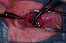tissue, and skin. INDICATIONS Most commonly, exenteration is performed in cases of life-threatening malignancy in an attempt to prolong life and decrease morbidity.5,40 Tumors extending secondarily from the adjacent sinuses, cranium, face, globe, conjunctiva, and eyelids account for approximately 75% of the cases requiring exenteration in an extensive review at Duke University.25 Squamous cell carcinoma, basal cell carcinoma, and melanoma are the most common orbital tumors requiring exenteration. Primary orbital tumors such as vascular malformations, primary lacrimal gland tumors, and meningiomas are less common causes of exenteration. Orbital exenteration is often required in cases of extensive rhino-orbital phycomycosis in conjunction with systemic antifungal therapy and hyperbaric oxygen. Wide surgical debridement is required in the treatment of mucormycosis; however, some reports have shown positive results without extensive exenteration.41 Less commonly, orbital exenteration is performed to in cases of severe orbital pain or deformity. SURGICAL PROCEDURE Patients with life-threatening malignancies or infections are typically under the care of a team of physicians at the time of exenteration. A complete systemic evaluation is required before surgery to establish the extent of the disease process and to determine the patient's prognosis following any surgical and/or medical treatment. Preoperative imaging should also be performed to help identify the extent of the orbital involvement and to aid in surgical planning. Obvious extension outside the orbit mandates the need for surgical consultation with a Mohs' surgeon, head and neck surgeon, or neurosurgeon. Often in cases of secondary orbital tumors, an interdisciplinary surgical approach is required. Consultation with a tumor board often proves valuable in formulating an overall treatment plan for the patient. Some tumors benefit from preoperative chemotherapy, whereas others require postoperative radiation therapy. In cases in which extensive systemic disease is found, a major disfiguring surgery might be contraindicated and palliative care might be undertaken instead. A definitive tissue diagnosis using permanent histopathology material is always required before exenteration. After general anesthesia is induced, an initial incision line is marked just inside the orbital rim. Intravenous broad-spectrum antibiotics are given. The area is infiltrated with local anesthesia with 1:100,000 unit of epinephrine injected subcutaneously. A 4-0 silk suture placed through the eyelid margin is used to close the eyelids and provide a means of traction during the procedure. An incision is then made using a no. 15 blade through skin and into superficial orbicularis muscle fibers along the previously marked incision line (Fig. 25). The dissection is then continued in the suborbicularis plane using scissors or unipolar cautery to the bony orbital rim. If possible, the septum should be left intact. The periosteum is then cut just outside the orbital rim around the entire orbit. The periosteum is dissected from the orbital rim and elevated along the orbital walls towards the apex using a Freer periosteal elevator. Adequate suction and a headlight are essential for proper visualization. The zygomaticofacial and zygomaticotemporal neurovascular bundles along the lateral orbital wall are cauterized and cut. The periorbita elevates easily from most surfaces of the orbit. Firm attachments are seen at the lateral orbital tubercle, the trochlea, and in the inferomedial orbit near the nasolacrimal duct and inferior oblique muscle attachment. When the inferior and superior orbital fissures are encountered, incremental cautery followed by cutting with large scissors facilitates the dissection and decreases bleeding. Care must be taken when dissecting the periorbita from the medial orbital wall to prevent breaking the bone. Penetration into the sinuses may result in the formation of sino-orbital fistulas. After the periorbita has been elevated to the apex, the apical stump is transected using enucleation or Metzenbaum scissors. The specimen is removed; cottonoids soaked in dilute epinephrine, Afrin, or thrombin are placed over the remaining orbital tissue; and the socket is firmly packed with 4- × 4-in. gauze sponges. After 5 minutes, the packing is removed and hemostasis is achieved with bipolar cautery to the stump. Inspection of the orbit is then performed for any evidence of abnormal tissue. Frozen section monitoring should be used to ensure complete resection in areas where the tumor approaches the surgical margins. Extension into the cranial vault or sinuses requires the expertise of a neurosurgeon and head and neck surgeon to ensure adequate removal of tumor.