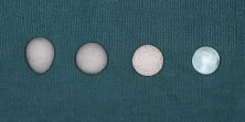 IMPLANT AND WRAPPING MATERIALS Much of the interest in enucleation and evisceration surgery over the past few years has concentrated on new types of orbital implant materials. Ideally, the purpose of an orbital implant is to provide adequate orbital volume to compensate for the absent globe, promote prosthesis motility, and be responsible for minimal complications following surgery. Common complications that have arisen include exposure, extrusion, infection, inflammation, and migration of the implant within the anophthalmic socket. Since 1885 when Mules placed the first orbital implant consisting of a blown glass sphere, various types of materials have been placed in the orbit following removal of an eye.2 Glass, rubber, steel, gold, silver, silicone, acrylic, titanium mesh, and polymethylmethacrylate (PMMA) spheres have been used (Fig. 11). Many of these materials are well tolerated by the host and provide adequate orbital volume. However, direct extraocular muscle attachment is impossible and motility is limited. Further refinement occurred with the use of quasi-integrated implants such as the Allen, Iowa, and Universal models. In these implants, the extraocular muscles were attached the implants directly and implant movement was transferred to the prosthesis via matching irregularly shaped surfaces on the implant and prosthesis. Quasi-integrated implants are now rarely used because of their difficulty of implantation and higher risk of migration and extrusion.