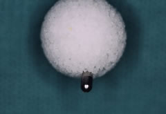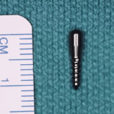 Unlike alloplastic implants, extrusion and migration of HA integrated implants is uncommon. The fibrovascular ingrowth prevents most exposed integrated implants from extruding.25 However, tissue breakdown and exposure of the anterior surface of the implant is reported to occur in 0% to 11.1% of cases25–27 (Fig. 14). Shields and coworkers28 reviewed 249 enucleation cases in which scleral-wrapped HA spheres were placed and found an acceptable exposure rate of 1.6%. The risk of exposure is reduced after vascularization of the anterior portion of the implant. Exposure can be reduced with meticulous layered surgical closure, proper implant size, drilling holes into the sphere before implantation, delayed fitting of the prosthesis, and vaulting of the posterior surface of the initial prosthesis to reduce pressure on the tissues covering the anterior surface of the implant. Care must also be taken to avoid exposure problems when using porous polyethylene implants as well. Karesh and Dresner24 first proposed the use of unwrapped porous polyethylene implants following enucleation, evisceration, and secondary orbital implant surgery with no signs of exposure in 21 patients. However, other investigators have found exposure rates to be high ranging from 9% to 13%.29,30 Although some debate exists regarding the need to wrap porous polyethylene implants, uncovered porous polyethylene implants appear to have a complication rate higher that wrapped HA implants.17 Soparkar and coworkers31 studied the vascularization of porous polyethylene cubes placed in rabbits. From the results of the study, they suggest an alteration in surgical technique to improve and accelerate implant vascularization. They advocate the use of a tissue barrier (sclera, fascia, and dermis) attached to the anterior surface of the implant to prevent exposure but believe that wrapping the implant is unnecessary. They also recommend increasing the amount of muscle tissue in direct contact with the implant by attaching the muscles anterior to their normal anatomic position, placing posterior fixation sutures, and removing the muscle capsule from the anterior 5 to 6 mm of each extraocular muscle. Currently, investigation is also underway to determine if growth factors or angiogenesis-promoting agents may enhance implant vascularization.32 Improved implant motility has always been a goal in implant design and advancement. The motility of wrapped alloplastic and HA has been compared in two studies.33,34 Both concluded that there is no motility benefit of nonpegged HA over spherical alloplastic implants. Motility is due to the attachment of the extraocular muscles to the wrapping and not to the implant material. Custer and coworkers also determined that larger implants showed more movement and that motility declines with advancing age. Other investigators have shown that oval implants show no advantage over spherical implants.30 Integrated implants might be unnecessary in patients who do not wish to consider peg placement. In motivated patients desiring maximal motility, coupling pegs made of titanium are available for use with both the HA and porous polyethylene types of implants. The pegging systems are placed into the buried, vascularized implant allowing direct coupling with the prosthesis. Before peg placement, implant vascularization is typically confirmed 6 to 12 months following surgery. This has been done in the past using bone scan technology. Recent evidence has shown contrast-enhanced magnetic resonance imaging (MRI) best suited for assessing the vascularization of the porous polyethylene and HA implants.35 However, some investigators believe that titanium motility pegging systems can be placed safely and effectively at the time of enucleation in Medpor or HA implants.36,37 The current pegging system for HA implants supplied by Integrated Orbital Implants, Inc. (San Diego, CA) consists of a threaded titanium sleeve with a hollow core and various shapes and sizes of coupling pegs. The pegging procedure is typically done under retrobulbar anesthesia and sterile conditions. With the implant stabilized, a hole is first created in the HA implant with progressively larger hypodermic needles. No power drill is required. The threaded titanium screw is then advanced into the implant with the aid of a sleeve driver until the top of the sleeve is flush with the implant surface. A flat peg is placed into the hollow core of the sleeve. The patient is treated with topical antibiotic for a month during the healing process. The patient is then sent to the ocularist to have the implant coupled to the prosthesis. The ocularist will determine the best technique for coupling and will select the appropriate titanium attachment. Complications such as peg extrusion, peg loosening, chronic discharge, pyogenic granuloma, infection, and conjunctival breakdown and exposure do arise from pegging. Jordan and coworkers found 37.5% of patients who underwent the pegging procedure in HA implants experienced problems. However, most cases used the older polycarbonate pegging system. It is thought that the newer titanium systems will have fewer complications. A pegging system is also available for use with Medpor implants. The motility coupling post (Porex Surgical, Inc., College Park, GA) consists of a threaded titanium peg that protrudes 4 mm above the implant surface (Figs. 15 and 16). Although the manufacturer recommends local anesthesia, some patients may require a retrobulbar injection before the pegging procedure. The conjunctiva is marked, and a small opening is made in the conjunctiva using a disposable cautery. The implant is then stabilized with a provided clamp. A hole is then carefully placed into the implant using a manual drill bit attached to a screwdriver. The equipment is packaged in a kit from the manufacturer. It is important to maintain the appropriate orientation of the drill, which is perpendicular to the implant, while making the initial h