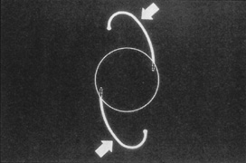 Taking another path, Cornelius Binkhorst of Holland developed a lens that involved pupil fixation with pairs of horseshoe-shaped haptics in front of and behind the iris (Fig. 6). This lens was associated with total dislocation into the AC or vitreous after pupil dilation, so miotics were many times given on a prophylactic basis indefinitely. Also, after ICCE, there was so much iridodonesis, especially with the initially used metal haptics, that the anterior aspects of the anterior haptics could touch the endothelial surface of the cornea, leading to localized corneal decompensation. Also, the weight of metal haptics could erode the iris. It was this style of lens that was implanted by early American implant surgeons Jaffe, Hirschman, Byron, and Kwitko in 1967.15 Introduced in 1967, Stanislav Fyodorov's “sputnik” IOL design achieved stabilization without larger anterior haptics (Fig. 7). In the mid-1970s, the Worst medallion IOL also featured an anterior optic with two horizontally oriented horseshoe-shaped looped posterior haptics similar to the Binkhorst structure. A Prolene suture was passed horizontally through the superior iris and then threaded between through two small holes in the superior optic. Because iris suture had to be preplaced, it always seemed to become entangled with the haptics during insertion making it difficult to place smoothly under air after ICCE, which featured a 180-degree corneal incision and an unprotected anterior hyaloid membrane. The suture was tied loosely so that the optic was secured to the superior iris. This would still allow the posterior haptics to dislocate anteriorly (embarrassingly, many times after having sex) or create a partial papillary capture, but at least it prevented total dislocation. Because surgical manipulation was expensive and carried the risk of infection, we would spend hours positioning patient's heads and bodies after pharmacologic weak dilation so that gravity would reposition the IOL. Then, when the IOL fell into position, we would reposition the patient and administer a topical miotic to capture the appropriate part of the IOL with the pupil. Aside from partial dislocation, this type of lens performed very well, but eye movement after ICCE still generated substantial irido-pseudophakodonesis. ICCE was difficult and time-consuming and carried a high risk. Even when done well, the procedure left an eye not able to support an IOL in stable fashion. The structural diaphragm of the posterior capsule after ECCE was rediscovered and appreciated because it contained the vitreous and created compartmentalization and stabilization of the AC, iris, and posterior chamber. Iridocapsular fixation was the next step. The lenses designed for this technique had a small platinum or plastic rod attached to the superior optic that could be clipped to the superior posterior haptic through a superior peripheral iridectomy (Fig. 8). The inferior haptic would be inserted, and eventually fibrose, between a leaflet of remaining anterior capsule and the posterior capsule. When properly secured, the pupils of these eyes could be dilated without fear of superior or inferior IOL dislocation. Because of capsule fibrosis and stabilization, there was also a substantial reduction in pseudophakodonesis. Surgeons who had taken up phacoemulsification, which had been introduced in 196716 and adopted by a fair number by 1972, could enjoy the small-incision control aspect of cataract removal but still had to enlarge the incision for IOL insertion. Things were improving.