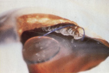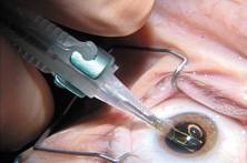 Substantial industry consolidation has occurred so that, in the United States at least, there are four major manufacturers with commercially available IOLs in 2004: Alcon Surgical of Fort Worth, Texas; Advanced Medical Optics (AMO) of Irvine, California; Bausch and Lomb of Clearwater, Florida; and STARR Surgical of Monrovia, California. Although many company executives and factory representatives from earlier companies have been integrated into the contemporary organizations, gone are the days of the prominent IOL lines of the 1980s and 1990s: CooperVision, Ciba Vision, O.R.C., Cilco, IOLAB, Precision Cosmet, Lynell Optics, and Pharmacia. Modern lensectomy lens replacement surgery consists of removal of the nucleus, cortex, and as much remaining lens epithelium on the posterior capsule as possible while avoiding other ocular structures. It should leave a central circular anterior capsular opening so that the anterior capsule remnant can overlap the peripheral IOL optic by approximately 0.25 to 0.5 mm for a complete 360 degrees. Surgery is usually accomplished under topical-intracameral anesthesia through a temporal clear corneal incision of less than 3.0 mm in length, permitting a foldable IOL to be placed using an adjunctive viscoelastic device. If well executed with either forceps (Fig. 27) or more commonly with an injector using a disposable cartridge (Figs. 28, 29, 30), this strategy provides good IOL centration and minimal unwanted side effects regardless of the foldable IOL material or design used (Figs. 31 and 32). |