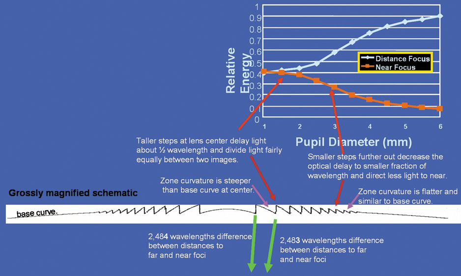 LOW/HIGH DIOPTER INTRAOCULAR LENSES STARR Surgical created low dioptric power IOLs with an overall optic diameter of 6.3 mm and overall length of 14.0 mm of 10-degree angled polyamide modified C-loop haptics (model AQ501OV). Powers available are +1.0 to +4 D in a convex/plano optic, 0 D in a plano/plano optic, and −1 to −4 D in a plano/concave optic. These can be used primarily in the capsular bag or in the ciliary sulcus as a piggyback IOL in situations in which IOL power calculation results have resulted in residual postoperative refractive error. They also have been used to physically push back the Crystalens™ optic if the optic or haptic became involved in asymmetric anterior capsular fibrosis and the fibrosis had to be physically disrupted as a secondary procedure. Similar products are available from other manufacturers, for example, the AMO:DL60L with a positive dioptric power range from 1 to 5 D and the DL60N with a minus dioptric power range from −10 to −1 D. Both of these are 13-mm overall length one-piece PMMAs. Alcon: The AcrySof® Expand® Series MA60MA is available with a diopter range from +5.0 to −5.0 in whole diopter steps and 13.0-mm overall length. Bausch and Lomb: The P574UV and BVR165XL are available in −18 D to +3 D in whole diopter steps. Models P359UV and P389UV are available in plano to +45 D in half diopter steps. These are all single-piece PMMA lenses of 13.0 mm overall length. The three-piece silicone LI61AO is available in positive dioptric powers: 0 to 4.0 D in whole diopters and 5.0 to 30.0 D in 0.5 diopters. LIGHT-NORMALIZING INTRAOCULAR LENSES Background Concerns about human eye retinal damage by UV radiation emerged because of the results of animal light toxicity studies in the late 1970s.77–79 This awareness stimulated the IOL industry to develop ultraviolet radiation (UVR)-filtering (300–400 nm) IOLs, especially because there should be no downside, that is, UVR did not contribute to vision. But, when these IOLs were introduced in the early 1980s, questions were raised regarding toxicity of the UVR-filtering chromophore80 and its potential for long-term leaching and possible release during Nd:YAG laser posterior capsulotomy. Unproven stability, safety, and lack of clinically demonstrated benefit of safety for these IOLs added to initial skepticism. The U.S. FDA testing for of the new UVR-filtering material addressed these concerns, as did demonstration of protection by such filtering in animal experiments.81 Human studies82,83demonstrated a need for protection from UVR. As a result, by the mid-1980s, virtually all manufacturers decided to offer only IOLs with an incorporated UVR-filtering chromophore. In 1978 Mainster78 discussed retinal damage from intense near-UVR light sources after providing measurements of a non–UVR-filtering PMMA IOL and comparing it with that of human crystalline lens data from the literature.84 He recognized the need for tinting IOL material. But because of the excellent visual results of non-blue light-filtering IOLs at that time, and to avoid new materials, he suggested continued formulation of permissible exposure levels of UV radiation and continued counseling pseudophakic patients about possible occupational or environmental hazards to excessive visible light. Zigman79 supported yellow tinting of IOLs, citing his own earlier experiments in animals, which showed retinal damage even with non-intense near-UVR sources. He cited references85,86 on the yellow color of the crystalline lens of several species including human. He gave other circumstances such as light sensitivity, exposure to light sensitizing drugs, and excessive glare, for which he suggested tinting of IOLs. He even created light-normalizing PMMA by a degradation process with UV radiation on an existing IOL material and IOLs made from it.87 In 1983, Sliney88 reported that removing wavelength of light less than 500 nm would filter out only 10% of useful visible light but would remove 97% of harmful UV and blue radiation. In 1985, Marshall reviewed the issues of radiation and the aging eye89 and suggested tinted IOLs so that they would transmit light in similar fashion as the natural human lens. Filtering of UVR and blue light for pseudophakic eyes was also suggested in 1986.90,91 Similarly in 1987 Mainster92 reviewed the possible link between light and macular degeneration and recommended UVR and deep blue protective sunglasses for aphakes and pseudophakes without any blue light-filtering IOL as precaution until the relationship between photic retinopathy and age-related macular degeneration (AMD) might be better understood. In addition to these studies, animal electroretinography (ERG) research,93,94 laboratory lipofuscin fluorophore A2E assessments,95 and human vitreous autofluorescence and fluorophotometry96 all suggest a potential benefit by reducing the amount of blue light overexposure experienced in UV-filtering IOLs. In 1987, Young97 wrote a review on pathophysiology of AMD and followed up next year with a review98 on the hypothesis that solar radiation plays a key role in AMD and suggested both antioxidants and protective radiation filters be intrinsic components of a program of preventive medicine. As of 1988, it was recognized that although the need for sunglasses in very bright sunlight could not be met by an IOL, at least filtering as much as possible damaging UV and blue light for all light conditions in pseudophakic eyes might be reasonable. Anil Patel, PhD, was the chief scientist at CooperVision in the early 1980s and contributed significantly to the development of UVR blocking and blue-light attenuating IOLs. At CooperVision he also worked on phototoxicity safety issues for its Argon laser delivery system for retinal photocoagulation. He had become part of the CooperVision organization through its acquisition in 1979 of the dental company Cavitron (New York). Before the acquisition, he made presentations to the FDA about phototo