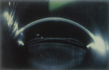 Sinskey's phacoemulsification technique was basically one-handed and allowed a more generous anterior capsular remnant to exist after nucleus removal. Symmetric capsular bag fixation was possible a fair amount of the time. Optic posterior angulation was incorporated in his lens to prevent pupillary capture, which was still possible. The concept of intracapsular phacoemulsification and the desire to fixate the IOL within the capsular bag ultimately led to the second type of posterior chamber IOL, the minimally compression-resistant, short haptic configuration created for capsular bag fixation that exists today.19 The third style was a transitional lens that was oversized and was to be used with planned ECCE. It eventually measured 14 mm in haptic diameter and 7 mm in optic diameter. It was large and stiff in its eventual one-piece design. The problem was that after ECCE, the capsular bag did not exist in a structural sense. With broad contact, at least one haptic would be captured by some partially unrolled capsular flap remnant, usually the inferior. If it were asymmetrically placed, which was the expectation, the lens was so long that capsular fibrosis would not decenter the very large optic too much because of the contact created in the superior ciliary sulcus by the high resistance to compression. Because of their large size, these lenses were very difficult to place symmetrically within the capsular bag but are still in use today as ciliary sulcus placed secondary IOLs in patients with very large eyes. As an aside, glass IOLs were marketed for a short period. Even in aqueous, they were heavier than plastic. Glass also broke if hit by the neodymium:yttrium-aluminum-garnet (Nd:YAG) laser (Fig. 12).20 Plastic IOLs inadvertently hit by the YAG laser during capsulotomy developed small cracks or pits that did not affect vision and did not completely fracture. Glass was eventually abandoned because of its weight and YAG intolerability. The right to use polyamide framing and haptic material was purchased from Lynell Optics by STAAR Surgical (Monrovia, CA) and is in use today by that company as a haptic material combined with silicone optics. ENDOTHELIAL CELL DAMAGE, VISCOELASTICS, ANTERIOR CAPSULAR TEARS, AND SUTURELESS CLOSURE With the introduction of clinical corneal endothelial photography 1976, Bourne and Kaufman heightened our awareness of quantitative and qualitative endothelial damage associated with IOLs.21 In 1980, Miller and Stegmann, working with the Pharmacia Company of Uppsala, Sweden, introduced the first viscoelastic, 1% sodium hyaluronate (Healon).22,23 This not only protected the corneal endothelium during IOL implantation but also made anterior capsulotomy much easier to perform. The control of the anterior capsular surface with viscoelastic, pushing it back and making it flat, was an important aid in the prevention of unwanted ARTs during the can-opener capsulotomy process. The number of central corneal endothelial cells after IOL implantation decrease at rates greater than those of healthy unoperated corneas24–29 (normal loss ranged from 0.3% to 1.0% per year). The only randomized trial of lens implantation, the Oxford Cataract Treatment and Evaluation Team found a higher rate cell loss in eyes with implants than those without in the first 3 postoperative years.30 Unfortunately the type of surgical technique and IOLs (ICCE and Binkhorst 4-loop lens) are no longer being used. A 5-year prospective study from the Mayo Clinic31 reported 23% to 28% of endothelial cell loss after cataract surgery over the 5-year postoperative period. The rate of cell loss was not found to be influenced by the surgical technique (ICCE vs. ECCE), implantation of an IOL, and type of IOL implanted (medallion iris suture IOL, transiridectomy clip implant, or posterior chamber IOL). Correlation was found between the endothelial trauma judged at surgery and the long-term endothelial cell loss. Extension of the follow-up time to 10 years32 demonstrated that the eyes continued to lose endothelial cells from the central cornea at an average rate of 2.5% per year (2.5–8.0 times the rate in healthy unoperated eyes); also in this study the type of IOL implanted did not influence the rate of cell loss. These studies had two major caveats: (a) A significant percentage of patients were lost to follow-up. (b) The study represents the early cases in the implant experience of the surgeons (1976–1982) and do not represent the currently surgical technique and IOL technology. In the early days of the phacoemulsification the corneal cell loss rate was high because of the long phaco time and high energy that were commonly used. In recent years, damage to corneal endothelial cells during cataract extraction has been minimized as a result of better instrumentation,33 newer viscoelastic materials,34,35 and improved surgical technique such as phaco chop,36 which aims to reduce machine measured phaco time. Several preoperative and intraoperative parameters can influence the risk for endothelial cell loss after phacoemulsification. A high nucleus grade,37 old age, long phaco time,38 and short axial length39 are associated with an increased risk for endothelial cell damage. Ravalico and coauthors40 reported that AC IOLs implantation did not appear to alter corneal endothelial function over 5.2 years of postoperative follow-up period. As a summary, it seems that the endothelial cell loss after cataract surgery is related to the surgical trauma and maybe to the absence of the crystalline lens but not to the IOL implantation. Surgeons who performed one-handed phacoemulsification were preserving the capsular bag better than two-handers. In 1981, John Graether,41 a left-handed one-hander, designed the first one-piece all-PMMA IOL that was 12.25 mm in overall length designed specifically for implantation in the capsular bag (Fig. 13). He had invented a “collar button” retractor and described a way to use it by pushing on
