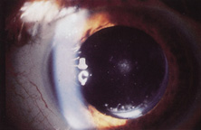 The most recent lens has had problems, but earlier models had ametropia, pupillary block, decentration, pigment dispersion, increased intraocular pressure, and cataract formation. The ICL is a single-piece plate design. The lens can be folded and inserted through a suture less corneal incision smaller than 3.0 mm. The myopic lens has an optical zone varying between 4.5 and 5.5 mm according to the power required. It is 7.0 mm wide and 11.0 to 13.0 mm long, with differences of 0.5 mm between different lengths. The lens is supplied in powers ranging from –3.00 to –20.50 D. Required are high predictive accuracy of the ciliary sulcus dimension, preoperative peripheral iridotomies, an AC depth working space of 2.8 mm, and a 3-mm clear corneal incision. It has been used successfully to improve vision in children with refractive amblyopia in whom traditional treatment had failed.187 It is currently awaiting FDA approval in the United States. Medennium Phakic Refractive Lens The Medennium phakic refractive lens is not available in the United States, but it is available in Europe. The phakic posterior chamber IOL manufactured by IOLtech (formerly Ciba Vision Corp.) is termed the phakic refractive lens (PRL) (Duluth, GA). It is manufactured from a clear silicone, with a refractive index of 1.46 and an overall length of 10.9 and 11.3 mm. A major feature of this lens is said to be that the hydrophobic nature of its material associated with aqueous flux dynamics would maintain the lens away from contact with the anterior capsule of the crystalline lens. The IOL would “float” on the natural lens, and “no touch” on this ocular structure would be observed even during accommodation. Lens opacification has been shown to occur in up to 14.5% of patients with other minor complications less frequent.188,189 Dislocation into the vitreous cavity because of zonule disruption is rare but has been reported in several cases190 (Figs. 72 and 73). BIOPTIC A serial combined procedure called Bioptic combines the creation of a corneal flap with a microkeratome and phakic IOL implantation.191 Three to five months later, the flap is lifted and a final refinement is added to the overall correction with the excimer laser (Fig. 74). The flap is made before IOL implantation because of the risk of endothelial damage when the AC shallows when the suction ring is placed and the suction is activated. LASIK or IntraLASIK after implantation with the Verisyse IOL should not present such a problem because the AC deepens with application of the suction device. |
