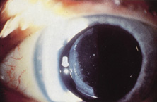 At first, the low PCO rate of the AcrySof® IOL was thought to be related primarily to the hydrophobic acrylic material. Only later was the importance of the square edge realized326,329–331 as animal studies and human clinical reports demonstrated low PCO rates of square-edged PMMA,331 silicone IOLs,311,332–340 (the CeeOn edge Model 911A IOL by Pharmacia was the major model to be investigated) and hydrophilic acrylic IOLs.341,342 Objective PCO scores at 1 year for AMO Sensar AR40 (round edge) versus the AR40E (square posterior edge) were 2.19 and 1.10, respectively, essentially halving the degree of objectively measured PCO at 1 year.343 A comparison of the AMO AR40 round-edge acrylic with the AcrySof® IOL showed a PCO score fivefold higher for the AR40 at 1 year.337 As mentioned earlier, the original C-flex IOL from Rayner and the single-piece AcrySof® IOLs have an interruption in the square edge at the optic-haptic junction. The square edge is lost here because of the architecture of the junction itself. In a substantial number of cases, a pattern of apparent LEC invasion has been noticed to extend from the junctions centrally (Figs. 121, 122, 123).65,331,344 At least 1 year after surgery, the opportunity for invasion at the junctions of the C-flex 570 with the 360-degree enhanced edge (Fig. 38) appears to have been denied (Figs. 124 and 125). As mentioned earlier, other manufacturers have incorporated sharp or square-edge optics: The Cee-On 911™ silicone IOL (AMO) was the first silicone IOL to feature a square edge, which has been incorporated into the Tecnis™ IOL (AMO) as well. The Sensar™ hydrophobic acrylic (AMO) and Clariflex™ silicone IOL (AMO) feature the same sharp posterior edge with compound rounded anterior edges, and the C-flex 570 (Rayner) features the 360-degree enhanced edge. FACTOR 7. SUPPRESSION OF POSTOPERATIVE INFLAMMATION. There is actually a seventh factor that could be added: the suppression of postoperative inflammation. J.A.D.'s routine is usually adequate to suppress normal postoperative inflammation after acrylic IOL implantation (i.e., prednisolone acetate 1% four times daily for 2 weeks, then twice daily for 2 weeks). Breakthrough inflammation can occur in patients who have received more trauma during surgery or patients who are more prone to inflammation (e.g., those with a history of iritis). The suppression of inflammation is particularly important when using silicone IOLs because of their tendency for increased capsular fibrosis with its inherent posterior capsule opacity and for heavier whitish anterior capsule fibrotic reaction, capsulorrhexis diameter reduction, and possible optic displacement. A more frequent and longer duration steroid drop schedule in silicone-implanted eyes is helpful in preventing breakthrough inflammation, which may occur when using the topical steroid routine that would have been adequate for acrylic implanted eyes. If patients do not get the drops into their eyes or discontinue therapy, inflammatory sequelae are more likely to develop (Fig. 126). Analysis of Nd:YAG Laser Posterior Capsulotomy Rates As an aside, objective methods such as photographic or Scheimpflug analysis may yield different results comparing one technology with the next because of study method, design, and analysis. Nd:YAG rate studies are even more variable because of the subjective nature of patient symptoms, surgeon variability, and lack of actuarial adjustment in most studies. Even the willingness to perform Nd:YAG surgery may be subject to variability of examination technique. For example, some patients may present with vision problems but their posterior capsules seem relatively clear by the usual retroillumination view (Fig. 127). In the evaluation of patients in consideration of Nd:YAG posterior capsulotomy, it is always good to examine the posterior capsule with direct illumination from the side as well. Many times this will reveal the true level opacity and better match the symptoms of the patient (Fig. 128).