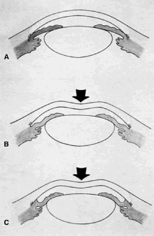 The procedure should also be able to be repeated easily with a reasonable likelihood of success. The likelihood that a glaucoma surgical procedure will be followed by troublesome symptoms will vary, of course, according to the seriousness of the condition, the nature of the patient, and the skill of the surgeon. Specific Considerations Regarding Relief of Pain and the Treatment of Blind Eyes Glaucoma can be associated with mild, moderate, or extremely severe discomfort. However, it is not the absolute level of pressure that causes the pain but the change in IOP and the rapidity with which that change occurs. Patients can maintain IOPs of 50 or 60 mm Hg with no discomfort. On the other hand, eyes in which the IOP varies 10 or 15 mm Hg in a day, for example, from 15 to 30 mm Hg, are usually productive of moderate but troublesome pain. A classic symptom of a failed cyclodialysis cleft is excruciating pain when the IPO goes from around 10 to around 40 mm Hg. There is a tendency to consider that the pressure level itself is the cause of the pain and, therefore, to try to relieve pain by lowering IOP. This is rarely successful, however, except in those cases in which the pressure is fluctuating more than 10 mm Hg during the day, such as those in whom the IOP rises more than 20 mm Hg rapidly. Patients with unstable glaucoma, such as occurs in association with the exfoliation syndrome, may have repeated measurements of IOP in a normal or slightly elevated range and yet may be uncomfortable. The probable cause is the variable IOP, ranging from 15 to 35 mm Hg during the day. In such cases surgery may become indicated because of deterioration of the optic nerve despite normal pressure. Patients with blind, painful eyes from IOPs around 40 mm Hg resulting from neovascular glaucoma usually are uncomfortable because of the ischemia or the inflammation and not because of the elevated pressure. The appropriate treatment for these cases is usually topical atropine and corticosteroids and not surgery designed to lower IOP. Treatment of Blind Eyes It is almost never appropriate to perform any surgical procedure other than an injection of retrobulbar alcohol or chlorpromazine or an enucleation or evisceration on a blind eye. Although the incidence of sympathetic ophthalmia is low, sympathetic ophthalmia is such a totally devastating complication that its potential occurrence mitigates against performing procedures that have the capacity to cause it. Sympathetic ophthalmia has been reported to occur with surgical peripheral iridectomy, filtration procedures of every kind, cyclocryotherapy, cyclophotocoagulation, and cyclodialysis. Retrobulbar alcohol tends to produce problems of its own, including numbness in the skull, ptosis, and strabismus. The experience with retrobulbar chlorpromazine is less extensive but promising because the pain relief it provides is usually excellent without production of the problems associated with retrobulbar alcohol. An injection of chlorpromazine, 25 mg, is placed in the retrobulbar space. The most appropriate therapy for the blind, comfortable eye is no therapy. The most appropriate therapy for the eye that is blind and has moderate discomfort because of markedly fluctuating IOP is a long-acting agent such as slow-release timolol; once the pressure is stabilized, the timolol often may be stopped. When patients learn that they have glaucoma, they may have an immediate decrease in the quality of life because of the anxiety that they experience as a result of knowing that they have a potentially blinding disease. Telling a patient that surgery may become necessary usually increases the degree of fear. Patients with glaucoma are often asymptomatic. The recommendation of surgery to prevent the loss of vision may be difficult for these patients to accept. They must have implicit trust in their surgeon. Their concerns are justified; surgery does not always work. Surgery does not always control the disease, and often it makes the vision worse. Consequently, fully informed consent must be obtained. The surgeon must be certain that the patient understands the risks of having surgery, the risks of not having surgery, the benefits of having surgery, and the benefits of not having surgery. In addition, the patient must be given a realistic idea of what to expect. | |||||||||||||||||||||||||||||||||||||||||||||||||||||||||||||||||||||||||||||||||||||||||||||||||||||||||||||||||||||||||||||||||||||||||||||||||||||||||||||||||||||||||||||||||||||||||||||||||||||||||||||||||||||||||||||||||||||||||||||||||||||||||||||||||||||||||||||||||||||||||||||||||||||||||||||||||||||||||||||||||||||||||||||||||||||||||||||||||||||||||||||||||||||||||||||||||||||||||||||||||||||||||||||||||||||||||||||||||||||||||||||||||||||||||||||||||||||||||||||||||||||||||||||||||||||||||||||||||||||||||||||||||||||||||||||||||||||||||||||||||||||||||||||||||||||||||||||||||||||||||||||||||||||||||||