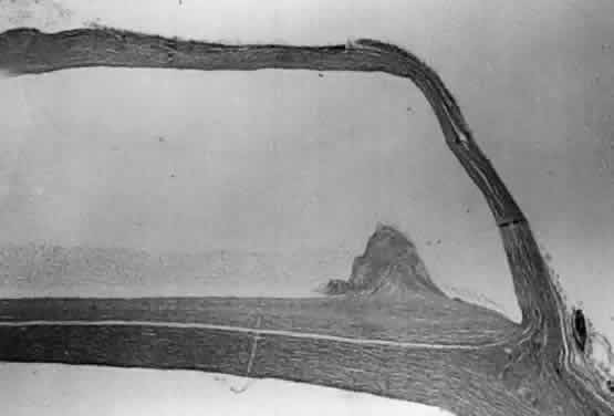 These histopathologic findings are similar to those reported for the Schocket tube,28 Baerveldt tube,29 and White pump shunt.24 The shunt apparatus is not degraded; it remains intact, with little or no adjacent inflammatory response and without fibrous adhesion to the implant. In contrast, a case report of an original Krupin valve composed of Supramid* describes significant biodegradation, with loss of tensile strength, attenuation, and fracture.30 S. Jackson, Inc, Alexandria, VA. The fibrous capsule that may originate from the episclera24 is relatively acellular and composed of scattered fibroblasts, collagen, and glycosaminoglycans.25,28 Aqueous is thought to pass through the fibrous capsule and into the orbital circulation through capillaries and lymphatics in addition to conjunctival circulation.25,28 Schocket used horseradish-peroxidase as a tracer and showed that aqueous could pass through the orbital vessels.28 In that study, the reservoirs preserved an area for bleb formation that had a relatively large surface area from which aqueous diffused. Orbital outflow, mechanical maintenance of a bleb zone, and a large surface area distinguish posterior tube shunts from limbal filtering operations and help to explain their success in the treatment of difficult cases of glaucoma. |