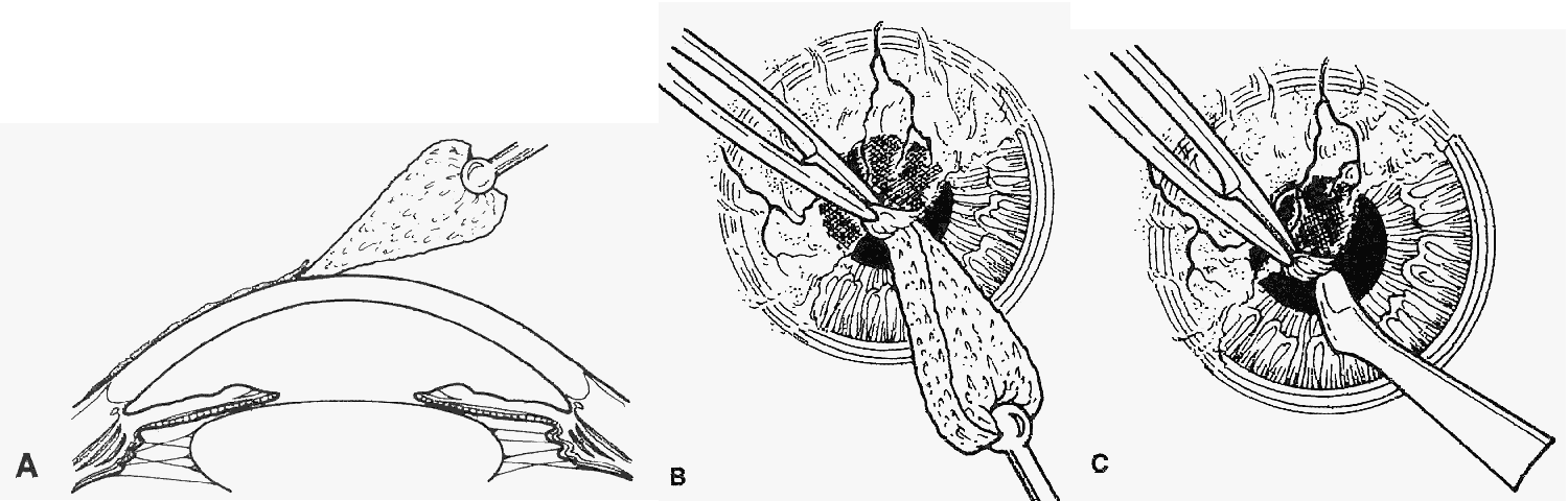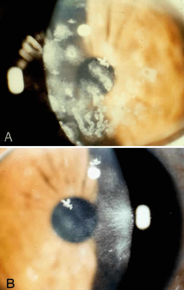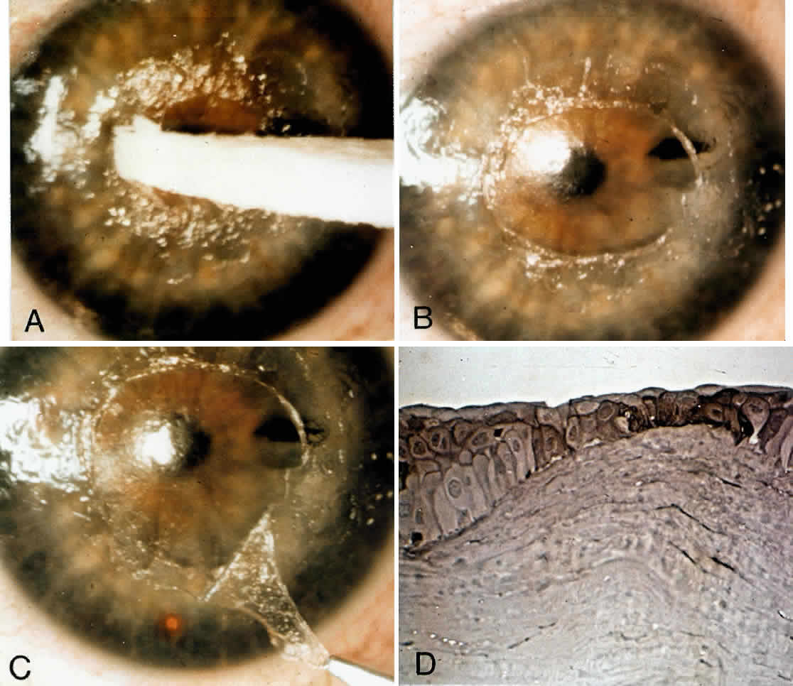 | Superficial keratectomy or stripping of anterior fibrous membranes can