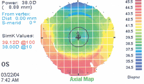 patient. As with PRK, careful attention must be given to pre-existing systemic or ocular conditions that may interfere with healing. However, because LASIK violates the corneal surface less than PRK and does not provoke a lengthy healing response of the epithelium and superficial keratocytes, a history of keloid formation is not necessarily a contraindication to LASIK. In addition, a history of quiescent herpes simplex keratitis or autoimmune disease is less of a contraindication to LASIK compared to PRK. Many reports indicate that postoperative dry eye difficulties are more common with LASIK than PRK. Assessment of history, the tear meniscus, Rose Bengal, or lissamine green staining, and Schirmer testing (if indicated) are particularly important. Patients with dry eyes preoperatively should have aggressive artificial tear supplementation, and, as needed, be considered for more aggressive treatment such as topical cyclosporine and prophylactic placement of occlusive punctal plugs placed prior to LASIK, in addition to artificial tear supplementation, in order to limit keratopathy that can lead to irregularity of the flap postoperatively. When evaluating the cornea prior to LASIK, it is particularly important to look for signs of an anterior basement membrane dystrophy that could predispose to epithelial defects with the microkeratome pass. These patients usually are best served having PRK or creating the LASIK flap by a femtosecond scanning laser. Corneal topography must be performed to quantitate corneal cylinder and rule out the presence of forme fruste keratoconus,13 the early stages of frank ectasia such as the easily missed pattern of pellucid marginal degeneration,14 or contact lens–induced corneal warpage. Keratometry is important because corneas steeper than 48 D are more likely to have thin flaps or frank “buttonholes” (central perforation) and corneas flatter than 40 D are likely to have a smaller diameter flap and are at increased risk for free caps because of transection of the hinge. When there is increased risk of a thin flap, the surgeon should be mindful that reuse of the microkeratome blade in the second eye typically results in creation of a second flap that is 10 to 20 μ thinner than the first flap. These issues may be reduced or eliminated by the use a femtosecond laser to create a lamellar flap. Measurement of corneal thickness using pachymetry is especially important prior to LASIK because an adequate stromal bed must remain after subtracting both the thickness of the lamellar flap and the ablated tissue in order to avoid corneal ectasia.15 Most practitioners use a guideline of a minimum residual corneal bed thickness of 250 μ and at least 50% of the original corneal thickness, although this is a clinically derived figure and no absolute determinations of this figure have been made. Even 250 μ remaining in the stromal bed after ablation does not guarantee that postoperative corneal ectasia will not develop. Most cases of “unexpected ectasia” despite these precautions have been associated with LASIK flaps thicker than the nominal expected thickness. As a result, an increasing number of surgeons are using intraoperative pachymetry to determine the actual flap thickness. In calculating the likely residual stromal thickness, the surgeon must use the value for the intended total correction, not the value of the nomogram-adjusted refractive error that is placed in the computer. The true tissue ablation is closer to the value needed to achieve the refractive shift. A nomogram adjustment to a lower refractive error that becomes the input to the laser does not mean that there is less tissue removed, but rather reflects consistent overcorrection in the absence of the nomogram adjustment. The nomogram reduction of the programmed input does not mean less tissue is removed, however! In addition, after the LASIK procedure, excess corneal flattening reduces the quality of the optical performance of the eye and increases aberrations; as a rule of thumb, postoperative central power below about 33 to 35 D should be avoided because of the high amount of spherical aberration associated with an excessively flat cornea, a difficulty exacerbated by a large pupil under mesopic and scotopic conditions. Ideally, all patients are measured preoperatively with a wavefront error detection device and, where appropriate, the laser ablation is modified to reduce postoperative aberrations. |
