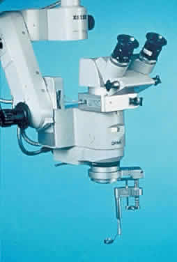 A hand support is preferred for vitrectomy surgery (Fig. 5). The surgeon rests both hands throughout the operation, avoiding fatigue and achieving fine control for intravitreous manipulations. The level of the hand support usually is at the patient's ears but should be individualized for the surgeon and patient. A sterile plastic drape, used to cover the patient, is pushed down into the space between the patient's head and the hand support. This forms a trough to collect fluid that would otherwise spill onto the floor. The microscope also can be covered with a sterile plastic drape.