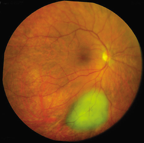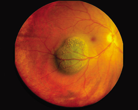and located more than 3 mm from the foveola. Photodynamic therapy using verteporfin has been considered, but there is little evidence of its effectiveness. One report on four patients showed tumor regression for 18 months in one patient, but lack of response or continued growth in three patients.20 |