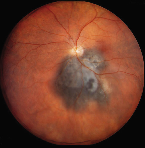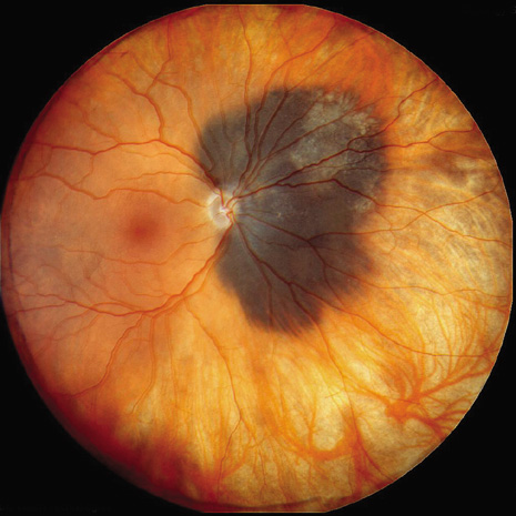 nevus.13 Choroidal nevi are managed by periodic observation. It is estimated that 1 in 5,000 choroidal