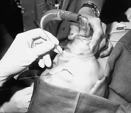 Fig. 5. Mask is positioned in this manner for a probe and irrigation of the nasolacrimal duct.