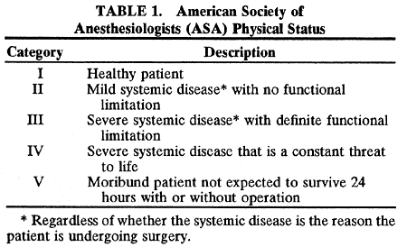 PREOPERATIVE EVALUATION ASA CLASSIFICATION