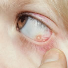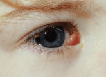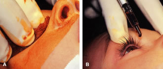 If the surgeon suspects that a needle has penetrated the globe and passed into the choroid or through the retina, indirect ophthalmoscopy should be performed.47–49 If a hole in the retina is observed, retinal consultation should be considered. Cryotherapy can be applied over the perforation site. If there is no hemorrhage and the vitreous is solid (the patient is young), I do not use cryotherapy. However, if the patient is an older adult or there is a large myopic refractive error or the vitreous has become liquefied, it would be prudent to apply cryotherapy to the sclera over the site of the perforation. Direct visualization can be used to control the amount and extent of retina treated. Use of antibiotics and consultation with a vitreoretinal surgeon for treatment or following treatment can be considered. CONJUNCTIVAL SCARRING AND DISTORTION OF ANATOMY Rectus muscle surgery should not disturb the plica semilunaris. If a medial rectus muscle is lost at the time of surgery and vigorous attempts are made to find it, the tissue that attaches to the plica can be distorted as a result of tissue trauma and hemorrhage associated with the exploration. The plica may become adherent to the surface of the globe, and this adherence can result in a restrictive strabismus. When a rectus muscle is cut free from the globe, the surgeon should attempt to cut the muscle tendon flush with the scleral surface. Failure to do so will leave a vertical white scar under the conjunctiva that overlies the old muscle insertion, especially when the lateral rectus muscle is recessed. NAUSEA Nausea commonly occurs after strabismus surgery despite many efforts to prevent it. Nausea occurs as a result of stimulation of the oculocardiac reflex, which produces a vagal response.50–52 When stimulated, this reflex can cause nausea or even asystole.51 Stimulation of this reflex combined with the use of general anesthesia, usually will produce 3 to 5 hours of nausea after strabismus surgery. Nausea is the most common cause of admission for overnight observation.52 To prevent nausea, the surgeon and assistant should exert only as much traction on the muscles and surrounding tissues as is needed to provide adequate visualization. Nausea is best managed by suctioning the stomach at the end of the operation and restricting fluid intake. Light feeding is recommended in the immediate postoperative period. Care is taken to replace fluids with administration of intravenous fluids. The use of rectal suppositories such as Tigan 100 to 200 mg every 4 hours also may be helpful. LIGHT SENSITIVITY Light sensitivity can be caused by inadvertent trauma to the cornea during the procedure or by a combination of drying of the cornea surface and disturbance of the normal tear film by the preparation solutions. The mild keratitis caused by drying and preparation solutions can be avoided by keeping the procedure time to a minimum. Measures should be taken to protect the cornea throughout the procedure. DELLEN Strabismus surgery can cause a dell or dellen or a reduction in corneal thickness from deficiencies in tear film. Usually, this problem is caused by elevation of the conjunctiva at the limbus. Care should be taken to ensure that the lids will pass over a smooth conjunctival surface at the corneal-scleral junction at the conclusion of the procedure. Simply patching the eye for a few hours will cause the cornea stroma to rehydrate and return to its normal thickness. INFECTION Because infections after strabismus surgery are uncommon, we concur with the many surgeons who prefer not to use antibiotics or antibiotic-steroid drops after uncomplicated strabismus procedures.53–56 Conjunctivitis is common and results most commonly from irritation of the conjunctival surfaces by preparation solutions. The conjunctiva may be irritated by the procedure. If there is purulent discharge, the use of topical antibiotics should be considered. Occasionally, a small abscess may form around a suture (Fig. 79). Orbital cellulitis and endophthalmitis are extremely rare complications of strabismus surgery. Only three cases of endophthalmitis have been reported after strabismus surgery since 1935.53 Ing55 found one case of cellulitis for every 1900 strabismus operations performed. The same author reported 1 case of endophthalmitis for every 30,000 cases of strabismus surgery.55 Cellulitis can occur if a child rubs the eyes after rubbing a runny nose. To avoid this complication, children who have a febrile illness should have elective surgery postponed.
