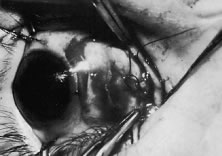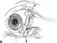 EYELID POSITION Recession or resection of a vertical rectus muscle that is larger than 3 mm may cause the lids to follow the muscle. For example, if the muscle is recessed, the lid overlying the muscle will be elevated or retracted with the muscle. The opposite effect occurs with resections. The effect of strabismus surgery on eyelid position can be reduced by dissecting the intramuscular septa and check ligaments under the inferior rectus muscle and by dissecting and severing the capsulopalpebral attachments from the inferior rectus muscle to the lower lid.62,63 OVERCORRECTION AND UNDERCORRECTION Despite all efforts to understand a patient's problem and the meticulous execution of a surgical repositioning of the muscles, overcorrections and undercorrections occur. The surgeon should make every effort to ensure that technique failure is not the cause of the undesirable alignment. If the overcorrection and undercorrection is small, occlusion, prisms, optical, botulinum A toxin, and finally re-operation may be used to produce a satisfactory alignment. When these measures fail, and if the residual deviation is unacceptably large, re-operation should be considered as soon as 6 to 8 weeks after the initial procedure. If a muscle is slipped or there is unexplained lack of function of a muscle during the first week after surgery, immediate exploration is indicated to correct the problem. REFRACTIVE ERROR An astigmatism may be produced or altered by rectus muscle surgery.64–68 Changes in children usually are transient, but in adult patients, the altered refractive error may persist.65 Once the rectus muscles resume their normal contractile force, distortion of the anterior segment and cornea is reduced and the astigmatism disappears. This effect usually occurs before 8 weeks. Change in the refraction can occur as a result of scleral necrosis67 or as a result of displacement of the lens.68 |