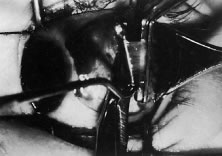 | In the early postoperative period, patients are given antiemetic suppositories and a clear liquid diet to control nausea. If pain is experienced, acetaminophen is given. Warm compresses with a clean washcloth soaked with warm tap water are applied to the closed eye several times a day for 3 to 4 days after the operation, or until the bloody secretions have subsided. We do not routinely use antibiotic drops or occlusive dressings. The patient or family may be contacted by the surgeon's office and/or the surgical facility to ensure recovery from the procedure is proceeding as expected. The patient is re-examined 3 to 7 days after the operation and again at 4 to 6 weeks. If there is suspicion of a complication or an unexpected result, more frequent follow-up visits are indicated. |
