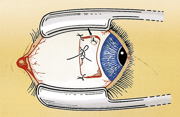 is covered with conjunctiva after the adjustment and ocular lubricants