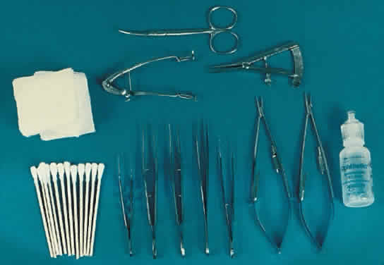 TIMING Excessive swelling of the eyelids or conjunctiva hinders the adjustment of extraocular muscles. Immediately after strabismus surgery, the patient's head should be elevated and ice applied to the eye and periorbital tissues. If the patient had strabismus surgery under topical anesthesia, the adjustment may be performed in the operating room during or immediately after the operation. After general anesthesia, the adjustment can be performed as soon as the patient is alert and responsive. Adjustments are easier if performed within 18 to 24 hours after surgery, although delays as long as 1 week after surgery have been reported.26 I generally perform strabismus surgery using adjustable sutures early in the morning and adjust the muscle or muscles on the afternoon of surgery or, occasionally, the following morning. If surgery is performed using retrobulbar or peribulbar lidocaine, the adjustment should be delayed 4 to 6 hours for the effects of the anesthetic to wear off.13 LOCATION AND EQUIPMENT I perform postoperative muscle adjustments in a fully equipped eye examination lane, although it also can be done at the bedside. A good overhead spot light and equipment for measuring ocular alignment must be available. The surgical instruments necessary to perform the adjustment should be kept in sterile, prepared packages (Fig. 10). A topical anesthetic should be available for the adjustment, as well as a topical antibiotic or antibiotic-steroid ointment after the adjustment is completed. An assistant is helpful for holding the eyelids open and stabilizing the globe. The adjustment is performed with the patient in the supine position to minimize any symptoms from a vasovagal reaction. After each adjustment, the patient is placed in a sitting position and the ocular alignment assessed. TECHNIQUE Topical anesthetic is applied to both eyes before the postoperative examination. A cotton-tipped applicator soaked in the topical anesthetic and applied to the area of the adjustable suture provides additional anesthesia. Proparacaine is effective in most cases if several drops are applied over several minutes just before the adjustment. The need for an adjustment and the amount of the adjustment are determined by assessing the postoperative ocular alignment and versions. Access to the adjustable knot usually is achieved by having an assistant hold the eyelids open. An eyelid speculum also can be used, but it adds to patient's anxiety and may increase the chance of a vasovagal response.27 If an adjustment is unnecessary, the slip knot is converted to a permanent knot and the suture ends are trimmed. If the muscle requires adjustment, the loop is cut and the suture end removed, being careful to leave the double throw intact. To advance the muscle, the surgeon should gently pull up both ends of the adjustable suture and tighten the double throw to the desired amount (Fig. 11). The adjustment is easier if the tension on the adjusted muscle is decreased during the advancement. This is accomplished by having the patient attempt to look away from the field of action of the adjusted muscle while the globe is held in the primary gaze position by the assistant.