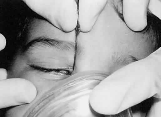 Recently, a nasolacrimal duct probe with a balloon catheter has become available as an adjunct to standard probing.15 Several reports of its use have been published,16,17 but it is not clear whether or in which cases this new instrumentation will be advantageous. EXPECTED RESULTS After a successful probing, tearing and discharge usually clear within 1 to 2 days. A topical antibiotic ointment or solution can be used if there is much mucopurulent discharge at the time of probing, but these are discontinued as soon as the eye appears to be clear. The normal passage of tears through the lacrimal drainage system helps to clear residual discharge. Initial probings are successful in over 90% of patients.13,12 Some surgeons have found a decrease in the success rate if the probing is delayed beyond the second or third year,18 but many patients can be cured by probing up to 5 years of age or older.2,3,19 If tearing and discharge persist after apparently successful probing, a second probing can be done in a month with the option of placing silicone tubing in the lacrimal system at that time. If it has not been possible to pass the probe into the nose because of bony obstruction at the lower end of the lacrimal duct, dacryocystorhinostomy is required to establish satisfactory tear drainage. Occasionally, the probe seems to pass into the nose, but irrigation is not free. In this case, it is unlikely that the probing will be successful. Repeat probing at the time, or reprobing with the option of silicone intubation after a 1-month interval, may resolve the issue. COMPLICATIONS Most probings are free of complications. A false passage of the probe may be signaled by extravasation of saline into surrounding tissues at the time of irrigation. This usually subsides in a short time, but prophylactic systemic antibiotics are advisable. Postoperative fever occasionally occurs after an otherwise unremarkable probe and probably is secondary to bacteremia induced by the probing.20 The fever subsides with antipyretics, and antibiotics are not routinely required. |