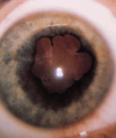 should have a screen performed at the time of presentation. Surgery for hyphema in children is rare unless blood fills the entire anterior chamber, which is referred to as an “eight ball” hyphema. However, this finding by itself is not an indication for surgery. There should be persistent elevated intraocular pressure despite maximal medical therapy (which places the optic nerve at risk for damage), detection of corneal blood staining, or unresolved hyphema of 9 days' duration that can cause peripheral anterior synechiae.27 Controversy remains regarding the criteria for surgical intervention.28 We believe the optic nerve is at risk for injury if intraocular pressure cannot be reduced to below 40 mm Hg after 3 days. Therefore, if maximal medical management that includes acetazolamide (Diamox), 10 to 20 mg/kg/day, and timolol maleate (Timoptic), 0.25% to 0.50% twice daily, does not achieve this, evacuation should be considered. Newer antiglaucoma medications should be avoided in children and in inflamed eyes until their safety in these situations has been documented. Children have demonstrated that their nerves can tolerate intraocular pressure in the mid 30s for 6 to 7 days without damage. During this time, the hyphema may resolve and the pressure return to a more normal level. After 6 to 7 days, if the pressure remains elevated in the high 20s to 30s one should reconsider surgery. Patients with sickle cell hemoglobinopathies can have significant intraocular pressure elevation with relatively small hyphemas.29 The optic nerve in these patients is less tolerant of elevated intraocular pressure than the optic nerve in patients with normal red blood cells. In addition, central retinal artery occlusion has been reported by both Michelson and Pfaffenbach30 and Radius and Finkelstein31 in patients with sickle cell hemoglobinopathies and may be exacerbated by systemic hypotensive agents. Acetazolamide should not be used in patients with sickle cell disease because it may cause a sickle cell crisis. Early anterior chamber paracentesis needs to be considered in these patients. Corneal blood staining typically occurs in patients with total hyphemas and is rarely if ever seen in hyphemas occupying less than 50% of the anterior chamber.32 At the first sign of corneal blood staining, the hyphema should be evacuated. This usually occurs 4 to 6 days after onset of the total hyphema but can occur at an accelerated rate with increased intraocular pressure. Preoperatively, the patient with increased intraocular pressure can be treated with mannitol. In older children and adults, mannitol can be given 30 minutes before the operation. In very young children, one may have to wait to give the mannitol until an intravenous line can be started in the operating room. Up to 0.25 g/kg can be used safely in children. The maximal dose is rarely needed to bring down intraocular pressure. The procedure can be performed with either a limbal-based or a fornix-based conjunctival flap. After the surgical limbus is cleaned of connective tissue and hemostasis is obtained, an incision appropriate to the vitrectomy hand-piece size is made into the anterior chamber. If the hyphema is not clotted, the blood can be evacuated with only irrigation and aspiration. If the hyphema is clotted, the cutting mode needs to be used. With suction and cutting speed on low, the surgeon should start nibbling away at the clot right at the incision, keeping the tip of the instrument as much in view as possible. The cutting part should not be directed anteriorly toward the cornea or posteriorly toward the iris and lens where structures can be injured. As the clot is removed, it becomes easier to keep the tip in site and visualize the iris and maybe even the lens. The goal of surgery is not complete removal of the clot. All one needs to do is remove a significant portion of the center of the clot. One should not pass the tip of the probe into the angle. With removal of a large portion of the clot, the remainder of the clot can retract, pulling the clot out of the anterior chamber angle and restoring filtration. After the clot has been appropriately removed, the incision is closed in the standard manner. If a cataract is encountered at the time of surgery, one can either proceed with cataract extraction at that time or can close the incision after evacuating the clot and perform surgery at another time. Unless the capsule is ruptured and the lens cortex fluffy, returning to remove the cataract at a later date is probably the better part of valor. Trying to remove the cataract at the initial procedure is hindered because visualization is impaired by the presence of the hyphema. In addition, the extra manipulation is not beneficial to the ruptured blood vessel that caused the hemorrhage to begin with. Before a lensectomy is done, one must be sure a cataract is present. A fibrin deposit on the anterior capsule can mimic a cataract. This deposit need not be treated and absorbs in 1 to 2 weeks. After the hyphema has been evacuated, the patient is out of immediate danger from blood staining and glaucoma unless rebleeding occurs. Approximately 60% of patients with a total hyphema achieve a good visual result. Final visual outcome frequently depends on the damage done by the original injury rather than the complications of the hyphema. The chief causes of poor vision are usually macular problems or traumatic cataract23 (Fig. 5). In the long term, patients need to be followed for the possible development of chronic open-angle glaucoma, cataract, and retinal damage. An examination with the patient under anesthesia may be required to obtain a thorough view of the peripheral retina. Until an extensive retinal examination is performed, acute care of a child with a hyphema is not complete. Any child who has sustained an ocular injury severe enough to result in a hyphema requires annual examinations because of the high incidence of late cataract and angle rece