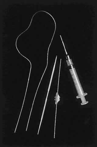 backward through the entrance site. The best approach is to close layer by layer, which helps maintain function and promote good cosmesis. Extruding fat should be excised because it increases the risk of infection. The orbital septum need not be closed so long as care is taken to close the other layers. With a lid laceration involving the margin, the first step is to align the margin to avoid notching. With the use of 5-0 or 6-0 chromic catgut, the first suture is placed through the tarsal plate and as closely as possible to the lid margin (Fig. 3A). The sutures should remain intratarsal and one should avoid full-thickness bites, which can cause corneal abrasion during the healing process. This suture is left untied to allow access to the remainder of the wound. The next step is to close the length of the tarsus with interrupted sutures (see Fig. 3B). Next, the lid margin is aligned, and a 6-0 silk suture is placed at the level of the gray line into the tarsus on either side of the wound (see Fig. 3B). Now the physician can return to the first tarsal suture and tie it. The silk suture is tied loosely and left long to avoid corneal contact. A 6-0 Vicryl suture is also acceptable in children and may eliminate having to remove the suture at a later date. Next, another silk suture at the level of the lash line is placed. This is also left long. These long ends can be incorporated into a future skin suture or taped to the cheek with a Steri-Strip. The orbicularis muscle is closed with interrupted absorbable 6-0 suture, such as Vicryl. The skin can then be closed with interrupted 6-0 fast-absorbing catgut suture (see Fig. 3D). If absorbable sutures are not used on the skin, sutures need to be removed in 3 to 5 days and the lid margin sutures should remain for 10 to 14 days. If a dressing is used, Telfa or petrolatum gauze is recommended because other dressings adhere to the incision. Cold compresses may help reduce swelling. Postoperative orders should include frequent visual acuity checks, especially when the septum has been disrupted. Lid edema and orbital swelling must be monitored because these may be early signs of retrobulbar blood accumulation. Formation of an expanding hematoma may compromise the blood supply to the optic nerve. If vision begins to lessen, the wound should be opened immediately at the bedside with a cantholysis to relieve pressure. Reducing ocular pressure with hyperosmotics and antiglaucoma medications may help improve perfusion and restore vision. After vision has been stabilized, CT can localize a large hematoma, which may require evacuation. Antibiotic drops or ointment is all that is needed unless the wound is considered contaminated. Oral antibiotics are indicated in contaminated cases, including dog bites, concomitant sinus fractures, or presence of considerable foreign material. When a lid laceration involves the canalicular system, it is best to address the canalicular laceration first and then close the lid laceration as described previously. Canalicular injuries are very common in children. There has always been controversy surrounding the indications for repair and the method used to repair these lacerations. It has been proven that both canaliculi are not necessary for adequate lacrimal drainage.8 Most surgeons have their own preference for repairing a single lacerated canaliculus. We believe that children obtain best cosmesis and function if the canaliculus is repaired at the time of the injury. The system must be repaired if both canaliculi or the common canaliculus is involved in the injury. The three important steps in repairing a canalicular laceration involve (1) temporary placement of a well-tolerated stent in the lacrimal system9, (2) mucosal anastomosis with an 8-0 absorbable suture using microscopic or loop magnification, and (3) a layered closure of the remainder of the laceration. Many modifications of canalicular laceration repair have occurred over the past 30 to 40 years. The reasons for so many changes include the introduction of magnifying devices such as loupes and the operating microscope, the development of new stent materials, and other technologic advances.10 Our preference is for the Crawford tube system, which employs silicone as the stent material. The probes are olive tipped for easy retrieval with the accompanying hook11 (Fig. 4). If the laceration involves the margin medial to the puncta, one should assume that the canalicular system is involved and further evaluation and repair should be undertaken in the operating room. If it is unclear whether the laceration is through the canalicular system, the system can be probed with a standard metal nasolacrimal duct probe. This can be performed in the emergency room with sedation in most cases. If one can see the distal end of the lacerated canalicular system, one should pass the probe the entire length of the system. The undamaged canaliculus should then be intubated with a Crawford tube.