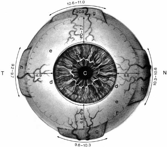 (Adapted from Duke Elder S. Wybar K. The eye. In Duke-Elder S (ed): The Anatomy of the Visual System, Vol II, pp 75–386. St. Louis, CV Mosby, 1961)