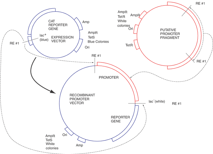 MOLECULAR BIOLOGY Molecular biology is the detailed study in detail of polymers of nucleic acids (DNA and RNA) that encode gene products, largely proteins. It also is the study of the control and regulation of gene expression. “Molecular biology is a discipline, a level of analysis, a kit of tools—which is to say, it is unified by style as much as by content. The style is unmistakable. The style is bold; it is simplifying; it is unsparing; often it is extremely competitive. The style is also, sometimes, subtle and sophisticated.”5 DNA DNA is the fundamental genetic material that encodes genes. In almost all forms of life, DNA is replicated and passed from one generation to the next. Information is stored in DNA by the sequence of the bases in the molecule: adenine (A), guanine (G), cytosine (C), and thymine (T). By convention the sequences from left to right are the 5' to 3' orientation of the sense strand of the DNA molecule, where “5'” is the fifth position on the deoxyribose and the “3'” refers to the third carbon atom of deoxyribose. Information about a gene product is stored in groups of three bases. The genetic code decodes the triplets of bases, translating the DNA sequence through its messenger RNA (mRNA), an RNA copy of the DNA sequence, into an amino acid sequence. The amino acid sequence folds into a three-dimensional structure, forming a protein that is capable of some biologic function. For the most part proteins, rather than DNA or RNA, constitute the physiologic cellular machinery. Recent developments suggest that small RNAs play important roles in metabolism and that small RNAs may be used therapeutically to interfere with the expression of some genes.6 RESTRICTION ENZYMES The discovery of restriction enzymes by microbiologists studying Escherichia coli and other bacteria provided a foundation for modern molecular biology. These enzymes, which are found in a variety of prokaryotes, cut the DNA double helix at specific base sequences, or sites. These sites are short but specific DNA sequences, usually four to eight bases in length. The natural function of a restriction enzyme is to degrade the DNA of invading viruses in order to protect the bacterium from infection. For example, the restriction enzyme EcoRI recognizes the sequence GAATTC in DNA and cleaves the DNA between the G and the first A. Over 500 different restriction enzymes, each recognizing a different DNA sequence, are now commercially available. They usually recognize sequences that are palindromic (reading the same forward and backward). When these enzymes cut the DNA strands in the middle of their recognition sequence, blunt ends are formed. When the strand scissions are offset, overlapping single-stranded ends of two or four bases are created. These “sticky ends” can occur with an overhang of the 3' strand (e.g., as produced by the restriction enzyme, Pst I) or with the 5' strand (e.g., as with EcoRI). Because any sticky ends created by digestion with the same restriction enzyme can reanneal readily under the proper conditions, these enzymes provide a powerful tool for inserting foreign DNA fragments into many vectors or other constructions. This allows virtually all sequences from the human genome to be cloned (inserted into plasmid or bacteriophage vectors and replicated in bacteria), so that large amounts can be isolated in pure form. One way in which a bacterium protects its own DNA from digestion with its own restriction endonuclease is with a methylase that recognizes and adds a methyl group to the given sequence. This sequence, once methylated, is no longer a target for some restriction endonucleases. Other restriction endonucleases are not inhibited by methylation, and these can recognize exactly the same sequences as the homologs that are inhibited. Two restriction enzymes that recognize the same base sequence but are isolated from different organisms are called isoschizomers. Just as isoschizomers may or may not react similarly to methylation, they may not cut the DNA strands at the identical site within the recognition sequence, and thus they may not produce identical ends. Although these differences are of more central concern to cloning and rearranging DNA fragments, they also can be important in gene mapping. For example, the use of a methylation-sensitive restriction endonuclease for analysis of restriction fragment length polymorphisms (RFLPs) might suggest genetic (DNA sequence) polymorphism when none exists. Methylation plays a role in gene expression in higher eukaryotes, and the use of pairs of isoschizomers, one of which is inhibited by methylation, is a means of assessing gene inactivation. Usually a gene that is not expressed in a given tissue is methylated, whereas the same gene is not methylated in a tissue where the gene's expression is needed. RECOMBINANT TECHNOLOGY Recombinant DNA technology is the set of techniques and tools used by molecular biologists to manipulate DNA molecules. Recombinant DNA technology allows the preparation of large amounts of a pure and homogeneous DNA sequence. Figure 1 illustrates the fundamentals of the technology with a procedure called subcloning. This procedure begins with a DNA sequence of interest, for example, part of a gene or cDNA that will be “inserted” into a second, usually larger, piece of DNA, called a “vector,” which is used to propagate the gene fragment. Vectors usually are derived from bacterial viruses (bacteriophages) or bacterial plasmids, small double-stranded DNA circles commonly found in bacteria that replicate autonomously from the bacterial DNA. The vectors usually have been manipulated to delete parts of the parental plasmid or virus and frequently have had other genes added to them depending on their specific application. To subclone the gene fragment into a different vector, some sequence information or knowledge of the positions of restriction enzyme recognition sites is required. The sequences of 