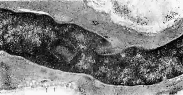 CHOROIDAL ISCHEMIA An area of debate in the literature regarding the choroidal vasculature has been whether its vessels are end-arterial and capable of causing ischemic injury upon occlusion or whether intrachoroidal anastomoses exist, preventing the possibility of ischemic choroidal lesions. Anatomic studies demonstrate intravascular connections between choroidal capillaries, arterioles, arteries, and veins. Despite these findings, there is widespread evidence of ischemic choroidal vascular lesions resulting in visual impairment due to secondary retinal and optic nerve injury. Clinical observations have shown that the effects of ischemic choroidal vascular lesions depend on the degree, extent, and duration of the reduction in choroidal blood flow. Acute loss of the choroidal circulation is manifested by a sudden onset of visual symptoms, such as occurs with thromboembolic phenomena, vascular wall inflammation, or necrosis and acute vasospasm. Chronic reduction of the choroidal circulation is associated with arteriosclerotic and diabetic vascular changes and presents more insidiously. The funduscopic appearance of ischemic lesions in the choroid has been recognized since the early 19th century. In 1904, Elschnig67 described areas of circumscribed secondary RPE loss (Elschnig's spots), which are now recognized to be signs of ischemic infarcts arising from acute occlusion of the choriocapillaris or precapillary choroidal arterioles (Figs. 32, 33, and 34). Multifocal acute ischemic choroidopathy results from acute ischemic lesions of small choroidal arterioles, whereas geographic choroidopathy is due to an occlusion of larger choroidal arterioles or small arteries.47Triangular or wedge-shaped choroidal lesions appear to be three-sided, the apex pointing posteriorly and the base anteriorly. They are believed to represent evidence of occlusion of larger choroidal vessels. Occlusion of the long or short posterior ciliary arteries or their branches results in triangular defects. Triangular defects caused by obstruction of the short posterior ciliary arteries are more numerous, more irregular, and usually smaller. If the triangles become confluent, they may produce hemiatrophy of a quadrant.47,68