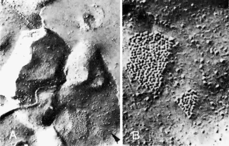 Choriocapillaris There is disagreement in the literature regarding the appearance and organization of the choroidal vasculature, particularly of the choriocapillaris, in different areas of the globe (i.e., the posterior pole, equator, and periphery).27,30,36–40 Despite the controversy regarding the angioarchitecture of the choriocapillaris, one fact is evident: There is great variation in the choroidal pattern within different areas of the same eye and in eyes from different individuals. This variation may explain some of the disagreement and inconsistencies regarding the choroidal circulation. In general, the choriocapillaris appears as a single layer of broad, wide capillaries lying in a plane internal to the arteries and veins of the choroid and external to Bruch's membrane. The capillaries of the choriocapillaris measure 20 to 50 μm in diameter. The density of the capillaries is greatest in the posterior choroid.28 The capillaries of the choriocapillaris appear as a continuous meshwork or reticulation, with intervascular spaces denoted as columns or septa. The choriocapillaris supplies oxygen and nutrients to Bruch's membrane and the outer third of the retina, except in the macula, where it supplies the entire retina. It is slightly flattened under Bruch's membrane, providing a large surface area for metabolic exchange, whereas the external floor (scleral surface) of the capillaries is gently undulating. Arterioles and venules join the choriocapillaris from the external surface, either perpendicularly or obliquely, or they come to lie in the same plane of the choriocapillaris and join the capillaries directly or at right angles. A focus of the controversy regarding the choroidal circulation is the organization of the choriocapillaris layer. Currently, the widely accepted concept of the choriocapillaris circulation and anatomy is based on work first presented in the early 1970s. Based on observations of fluorescein angiograms in monkeys, Hayreh41–43 described the choriocapillaris as a homogeneous, lobular structure with a centrally located feeding arteriole and peripherally located collecting venules. Noting that fluorescence did not cross lobular borders, he concluded that the choriocapillaris had a segmental distribution and that choroidal arteries behaved as end-arteries. Weiter and Ernest30 described the anatomy of the choroidal vasculature using vascular casts injected with neoprene latex. By observing the vascular filling, they were able to distinguish between precapillary arterioles and venules. They found that the choriocapillaris was thickest and of greatest density in the submacular region. The choriocapillaris in the peripheral choroid was found to have a specific pattern in which a precapillary arteriole supplied a circular capillary area 1 to 2 mm in diameter. Venule drainage separated contiguous circular capillary beds, possibly resulting in effective end-arteries despite the fact that adjacent capillary beds were interconnected. This distinct choriocapillaris pattern was not evident in the equatorial and posterior choroid, where many precapillary arterioles were directly interconnected via the choriocapillaris without intervening venule drainage. Torczynski and Tso27 reported on the architecture of the choriocapillaris in the posterior pole after examining choroidal flat preparations and transverse and oblique histologic sections (Figs. 21, 22, and 23). They described the overall appearance of the posterior choriocapillaris as a series of adjoining lobules that was striking in some preparations and subtle in others. The center of the lobule consisted of a single precapillary arteriole rimmed in a thick mantle of collagen measuring 15 to 25 μm and opening perpendicularly or curvilinearly into a capillary bed that radiated an average distance of 300 to 400 μm before changing from a radial to a circumferential direction. The circumferential capillaries in the periphery of the lobule were wider and converged from several directions, forming star-like or dendritiform configurations in the plane of the choriocapillaris. Venular openings, outward bulgings of the external choriocapillaris called atria, measured 30 to 37.5 μm and were present singly and in linear sequences underlying the circumferential capillaries. The often incomplete lobules varied in their geometric configuration, having three to six sides and ranging in area from 420 × 605 μm to 800 × 1200 μm. The lobular unit was thought to provide a preferred outflow route via the perimeter of postcapillary venules so that cross-flow from lobule to lobule would not normally occur, and thus the precapillary arteriole would function as an end-arteriole.