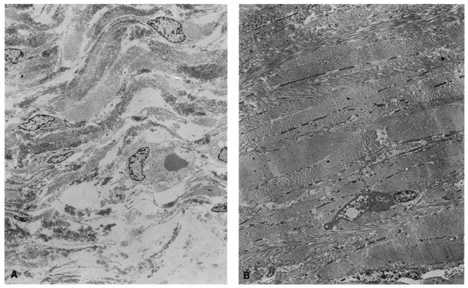 The developmental process of the human sclera progresses from anterior to posterior and from inside to outside.4 The human eye develops early in week 4 as an evagination from the ventral lateral aspect of the neural tube or neuroectoderm at the level of the forebrain in the diencephalon. The end of the evagination becomes slightly dilated to form the optic vesicle. At the same time a small area of surface ectoderm overlying each optic vesicle thickens, forming the lens placode, which invaginates to become the lens vesicle. At this time there are three waves of neural crest mesenchymal invasion. The first is responsible for the corneal endothelium and trabecular meshwork, the second for the corneal and scleral fibrocytes, and the third for iris and choroidal stroma. By week 5 of development each optic vesicle invaginates to form the double-layered optic cup or neuroectoderm that is surrounded by neural crest which is also of ectodermal origin. The differentiation of neural crest cells into sclera and choroid occurs by week 6 of development in humans in the region anterior to the equator (about day 43 of development),5 progresses backward to the equator by week 8, and reaches the posterior pole by week 12.1 This differentiation is induced by the retinal pigment epithelium.6–8 The sclera as well as the choroid and the retinal pigment epithelium requires the presence of the developing lens for normal growth and change in shape, structure, and function.1 By the 4th month circularly oriented scleral fibers form the scleral spur, and by the 5th month scleral fibers around the axons of the optic nerve form the lamina cribrosa.1,4 Arrest of fetal development at this stage or the failure to lay down new collagen on the inner aspect of the posterior sclera might well account for some of the staphylomatous changes found in congenital myopia and disc changes found in some patients with congenital glaucoma. Ultrastructural studies show that developmental events of the sclera begin in the region anterior to the equator at approximately day 43.4,5 The late mesenchymal cells or very early fibroblasts of the anterior portion possess elongated nuclei and many glycogen granules and lipid vacuoles whereas those of the posterior portion possess round-to-oval nuclei and few glycogen granules and lipid vacuoles. The late mesenchymal cells or very early fibroblasts of the anterior and posterior portions contain many free ribosomes and polyribosomes, as well as immature rough-surfaced endoplasmic reticulum and Golgi complex. The early fibroblasts begin the synthesis of glycoproteins, glycosaminoglycans (especially hyaluronic acid), collagen, and elastin between day 43 and 50, thus filling the intercellular space. Developmental events directed from inside outward begin at week 7.2 with a marked increase in the inner portion in glycogen granules and lipid droplets of the cells, and in number and average diameter of collagen fibrils. Cytodevelopment of the sclera is characterized by decrease of ribosomes, polyribosomes, glycogen granules, and lipid vacuoles, and by increase of rough-surfaced endoplasmic reticulum and Golgi complex components. Development of intercellular substances is characterized by an increase in the number and average diameter of collagen fibrils (Fig. 1) and in the amount of elastic deposits with electron-translucent central cores. By week 10.9 there are no more differences between the inner and outer portions. By week 13 there are no more differences between the anterior and posterior portions. By week 24, fetal sclera has the same ultrastructural characteristics as adult sclera. Between week 6 and week 24 there is a threefold increase in thickness, possibly by progressive laying down of collagen fibrils on its inner aspect as more mature collagen fibrils are found in the outer part of the sclera and the younger smaller collagen fibrils on its inner aspect; thereafter the rate of increase diminishes rapidly. Defects in synthesis of extracellular matrix components during scleral development may account for conditions such as Marfan syndrome, osteogenesis imperfecta, pseudoxanthoma elasticum, Ehlers-Danlos syndrome, congenital myopia, and nanophthalmos. Immunohistochemical studies show that the extracellular matrix of fetal sclera has the collagens I, III, IV, V, and VI, the glycosaminoglycans dermatan sulfate, heparan sulfate, hyaluronic acid, and chondroitin sulfate, and the glycoproteins fibronectin, vitronectin, and laminin.9 Collagens II and VII are not present. Collagens play a major role in strength (collagen I), resiliency (collagen III) and structural integrity (collagens IV, V, VI); glycosaminoglycans in distensibility; and glycoproteins in cell adhesion, growth, differentiation and migration, as well as in other extracellular matrix component organization. Collagen VIII may also be present in human fetal sclera.10 Development of scleral extracellular matrix from fetus into the adult includes increase of collagens I, III, and VI, and decrease of collagen IV and VIII, hyaluronic acid (Fig. 2), fibronectin, vitronectin, and laminin.9,10 By the time the tissue is mature, collagen IV, although abundant in fetal tissue, has almost completely disappeared, except in blood vessels. Heparan sulfate is identified in fetal and adult sclera in small amounts. Increase of collagens I, III, and VI may account for the increase in strength, resiliency, and structural integrity of adult sclera. Decrease of hyaluronic acid may explain the decrease of distensibility of adult sclera. Decrease of fibronectin, vitronectin, and laminin may suggest they play a major role in directing developmental events during the younger gestational periods, including cell and extracellular matrix organization. POSTNATAL DEVELOPMENT AND AGE-RELATED CHARACTERISTICS Scleral development is determined by the genetic signaling to the fibrocytes of the sclera, and by the concomitant development of the adjacent structures such as