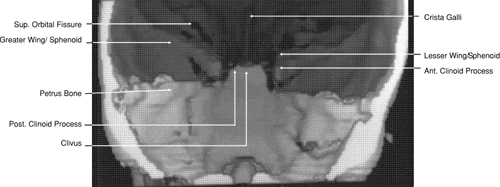 TECHNIQUE AND THEORY The discovery of x-rays in 1895 by Roentgen ushered in the age of diagnostic imaging. The basis for the images created by x-rays is the differential absorption of such rays by various tissue structures. This is based on the fact that atoms with higher atomic numbers and greater electron density will absorb and attenuate more of these rays than those with lower atomic numbers. Therefore, for an image to be created by any x-ray imaging device, the minimal requirements include an emitter to produce x-ray energy and a detector to measure the amount of this energy transmitted through a particular structure. It was not until the 1970s, however, that a major advance was made in this area with the development of CT by EMI Ltd. of England. Since the installation of the first CT scanner in 1971, there have been four further generations of scanners that have resulted in improved spatial resolution and decreased scanning time. In standard plain film radiography, images are produced by the exposure of a film source to x-rays transmitted through an object of study. Both the film and the radiation source are perpendicular to the object to be studied. To delineate more exactly a single plane of view, plain film tomography developed as a next step. With the use of this technique, both the radiation source and the film source are moved in synchronicity while the object to be imaged remains stationary. This enables a specific target plane to be in clear view while adjacent planes are blurred. The development of CT represented a dramatic and significant improvement over plain film tomography. Although it also uses x-rays in an attempt to image clearly a specific object plane, its conceptual basis and methodology are markedly different. In this imaging technique a rotating radiation source is used to transmit x-rays rapidly through an object from a number of angles, usually in 1-degree increments. At the same time a rotating radiation detector array is used to measure the x-ray attenuation by a given cross section of intervening material. The data are then digitized and analyzed using various algorithms to permit gray-scale image reconstruction representing the attenuation coefficients of the imaged tissue. The algorithmic computation is simplified by using data collected from one two-dimensional (2D) slice at a time and by calculating the attenuation of many small volumes or voxels of this slice (volume averaging) instead of using data from the many points in one large volume. Image resolution is improved by reducing both the volume of a single voxel and the thickness of the individual tissue cross section through which radiation is transmitted. The unit representing the extent to which a particular voxel attenuates the x-rays is termed the Hounsfield unit (HU). The HU varies from a value of -1,000, or minimal attenuation as represented by air, to + 3,000, or maximal attenuation as represented by bone, with zero being equal to the attenuation of x-rays by a voxel of water. In gray-scale terms, the lighter the area imaged, the greater is the absorption of x-rays; the darker the area imaged, the less is the absorption of x-rays. More recently, evolution in CT software has permitted the creation of high-resolution 3D images (Fig. 1).8 This has been of particular interest in cases of traumatic and congenital bony defects of the skull, where such images are quite useful in planning reconstructive efforts. With additional mathematical manipulation of the attenuation coefficients obtained from cross-sectional 2D slices, 3D images can be reconstructed. This is accomplished by estimating the interstice voxel HU values. These are generally assumed to be a weighted average of the HU values for the voxels of the two adjacent slices. The locations of the voxels are then described in terms of a 3D coordinate system with the z-axis parallel to the CT scanner table, the y-axis perpendicular to the top of the table, and the x-axis parallel to the CT scanner gantry opening. These images can then be reconstructed in either gray-scale or false color and recorded on film or tape.