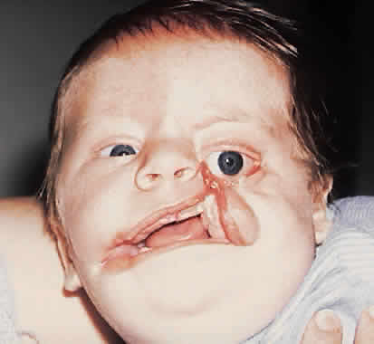 cleft has an obvious lower lid and medial cheek defect with tears exiting