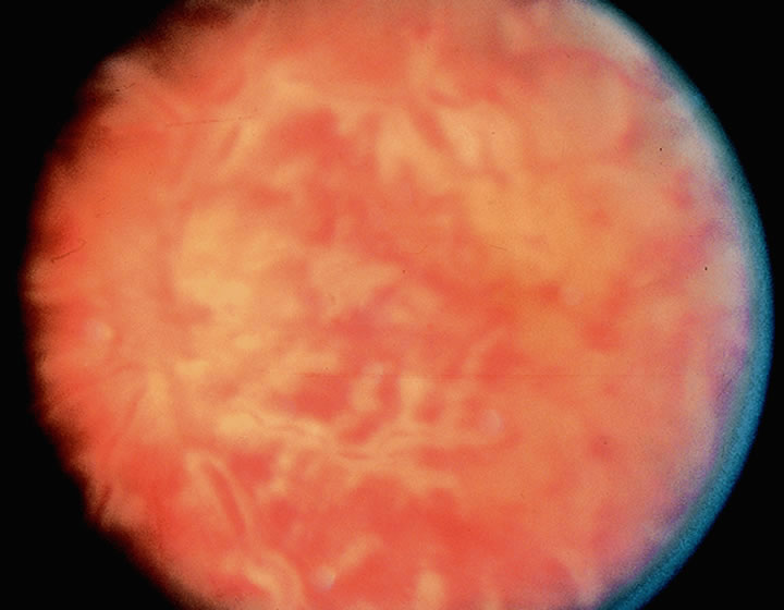 Stevens-Johnson syndrome has been associated with the DQB*0601 allele, with a RR of 7.2.115 HLA-Bw44 (a split from HLA-B12, which is of interest because of the association with ocular cicatricial pemphigoid) was also found to have an association with Stevens-Johnson syndrome.116 The HLA association may be one of several factors contributing to this autoimmune disease, because immune complexes have been demonstrated in the blood and immune globulins are deposited at the dermal-epidermal junction.115 Thygeson's superficial punctate keratopathy has been associated with HLA-DR3.117 Ophthalmic Diseases with Conflicting Reports of HLA Association As more information is gathered about HLA and their associations with disease, it becomes clearer that HLA polymorphisms appear to be responsible for genetic variations in the extent of the immune response seen in different individuals in response to different Ags. There have been many studies in which no MHC Ags could be linked to ophthalmic diseases. In the field of cataract, senile cataract has not been found to have any HLA association.118 Diabetes, mitochondrial myopathies, and uveitis are all associated with the formation of cataracts, but there has been no demonstrable HLA association with the cataract.119 Primary open-angle glaucoma (POAG) is familial in 20% of the cases; however, even with the considerable evidence of genetic factors in POAG, there have been inconsistent reports.120 Various studies demonstrate association with increased and decreased association with various HLA types; however, the associations with HLA-D and -DR have not yet been studied in detail.119,120 There have been no HLA associations on the A or B loci found for acute angle closure glaucoma.120–122 No association was found with pigment dispersion glaucoma,123,124 oral steroid-induced ocular hypertension and steroid-induced cataract, or chronic uveitis. There have been inconsistent reports of HLA associations with herpetic keratitis. HLA Antigens and Fundus Diseases Retinoblastoma (Rb) was found to have a possible HLA association in a small study in the 70s,125 whereas another study of 16 Rb patients did not confirm this.126 Interestingly, when a patient has Rb, it has been shown that the expression of Rb leads to modification of the chromatin environment of the HLA-DRA promoter independent of transcription.127 Eales's disease was recently demonstrated to have a positive disequilibrium of haplotypes A3-B44 and A11-B12;128 however, there was no association demonstrated in other studies. Choroidal malignant melanoma (Fig. 8) has been associated with HLA-Aw32129 and a loss of heterozygosity on chromosome 6,130 but a separate study of 514 patients with melanoma in other parts of the body and a study of 64 patients with uveal melanoma failed to reveal any significant association.131 No HLA association was demonstrated with central serous retinopathy,129 chorioretinitis, toxoplasmic retinochoroiditis, chronic juvenile iridocyclitis, age-related disciform macular degeneration, retinitis pigmentosa, or rhegmatogenous retinal detachment. Proliferative vitreoretinopathy (PVR) was found to have increased HLA-DR expression on RPE cells; this could play a role in triggering a local immune response in PVR.132 Sympathetic ophthalmia was found in an early study to have no HLA association,90 whereas in a Japanese study, a significant association was found with HLA-DR4 and DR5391; and in North American patients, an association with DR-4 was noted.85 Ophthalmic Diseases with Systemic Components and HLA Sarcoidosis has not been found to have a consistent HLA association.133 Diabetes mellitus has been evaluated closely since 1972 for HLA associations.134 There has been an increased risk of insulin-dependent diabetes mellitus (IDDM) in HLA-Dw3 or DRw3 positive patients. In retinopathy, a variety of HLA associations have been suggested including the risk for advanced retinopathy in HLA-B15 positive patients and more common severe retinopathy in patients with DR3-DQ2/DR4-DQ8 alleles.135 Temporal arteritis has been found to have an association with HLA-DRB1 *04 alleles.136–138 There is considerable evidence that Graves' disease is of autoimmune etiology, and there have been several studies suggesting a significant association between HLA-B8 and Graves' disease in Caucasian populations.21,22,120,139 Molecular mimicry appears to play a role in the pathogenesis. |