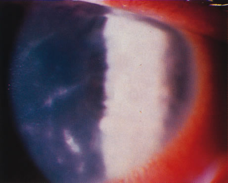 DISTINGUISHING INFECTIVE FROM OTHER CAUSES OF KERATITIS Differentiating MK from CLASK is important both because the management of the individual patient is quite different for the two disorders and because a satisfactory case definition is critical to the study of these different diseases. Current laboratory techniques cannot be reliably used to differentiate microbial from sterile keratitis. CLASK is a diagnosis of exclusion, both because there are no laboratory investigations to substantiate the different causes, and because microbiologic investigation in CLASK has a low sensitivity. It is well established that a negative corneal culture cannot be used to eliminate a microbial cause or, conversely, to validate a sterile cause. Large series of MK cases have documented a culture-positive rate of 50% in in-patient populations comprising the more severe cases,35 whereas a high proportion of CLASK cases are small lesions that may be expected to be culture positive less often. Negative culture results from microbial lesions may occur for several reasons: small volumes of infected material are available for culture, viable organisms present in deep tissues are less available to corneal sampling methods, and pretreatment with antibiotics reduces the viability of invading organisms. For these reasons, clinical criteria have to be used both for the diagnosis of individual patients and in studies designed to investigate these disorders. The size and position of the lesion and presence or absence of an epithelial defect31 are not diagnostic, although these criteria alone have often been used to attempt to differentiate the lesions. The clinical criteria that may be used to differentiate these lesions are summarized in Table 331,32 and illustrations of the lesions are shown in Figures 1, 2, 3, and 4. The use of clinical criteria has been supported by epidemiologic data showing that these definitions can distinguish between distinct disease processes.36