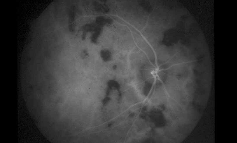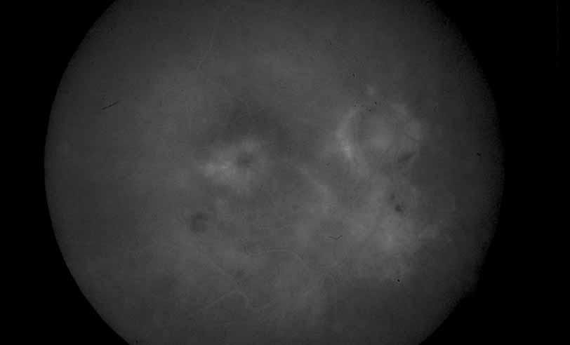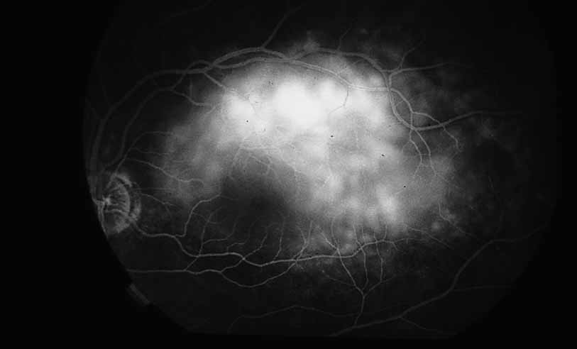 of the Hypofluorescent Spots Observed by Indocyanine Green Angiography. Graefe's Arch Clin Exp Ophthalmol 239:242–247, 2001 8. Dhaliwal RS, Maguire AM, Flower RW, et al: Acute Posterior Multifocal Placoid Pigment Epitheliopathy. Retina 13:317–325, 1993 9. Vadala M, Lodato G, Cillino S: Multifocal Choroiditis: Indocyanine Green Angiographic Features. Ophthalmologica 215:16–21, 2001 10. Okada AA, Mizusawa T, Sakai J, et al: Videofundoscopy and Videoangiography Using the Scanning Laser Ophthalmoscope