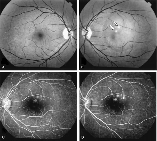 A number of other drugs, chemicals, and metals can induce retinopathy that manifests clinical and angiographic findings, including desferrioxamine, canthaxanthine, nicotinic acid, iron, and copper. Other texts deal with these conditions in greater detail.55,271 |