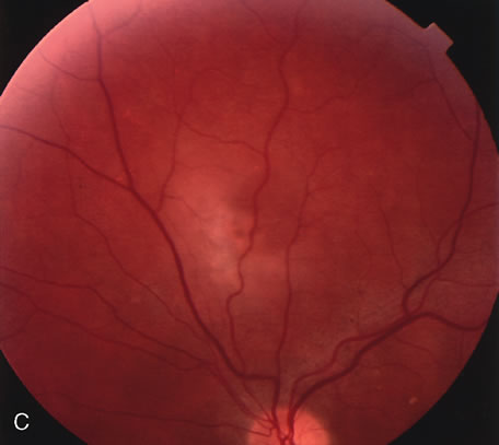 Gentamicin and tobramicin toxicity, which often result from inadvertent injection into the vitreous during cataract surgery, cause devastating retinal damage. In areas where high concentrations of gentamicin reach the retina there is obliteration of the retinal vasculature and ischemic necrosis of the retina (Fig. 43).269,270