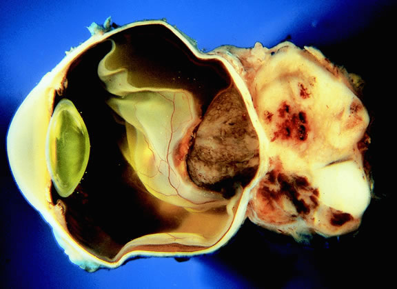 | The ophthalmologist's primary duty is to preserve or improve vision. Occasionally, however, he or she may elicit symptoms or make observations that can save a patient's life. A variety of malignant tumors arise primarily within the eye or can involve its tissues secondarily. Ocular tumors generally are rare, but some have significant mortality. The retinal tumor retinoblastoma predominates in early childhood and is discussed in another chapter. In adults most intraocular tumors affect the uveal tract. Primary nevi and malignant melanomas arise from uveal melanocytes. The uvea, particularly the posterior choroid, is also involved secondarily by metastasis from distant primary tumors, mainly carcinomas, and also is affected by leukemia and lymphoma. Other primary tumors that affect the uveal stroma are hemangiomas and rare entities including leiomyomas, peripheral nerve sheath tumors, and hemangiopericytomas. Other rare intraocular tumors in adults arise from the neuroepithelial layers of the eye. The retina in adults may be affected by vascular tumors, most often capillary hemangiomas or hemangioblastomas, which often are associated with the tumor diathesis von Hippel-Lindau (VHL) disease. Acquired neoplasms of the iris and retinal pigment epithelium and the pigmented and nonpigmented epithelia of the ciliary body occur but are quite rare compared with melanoma. These are discussed in greater detail later. |