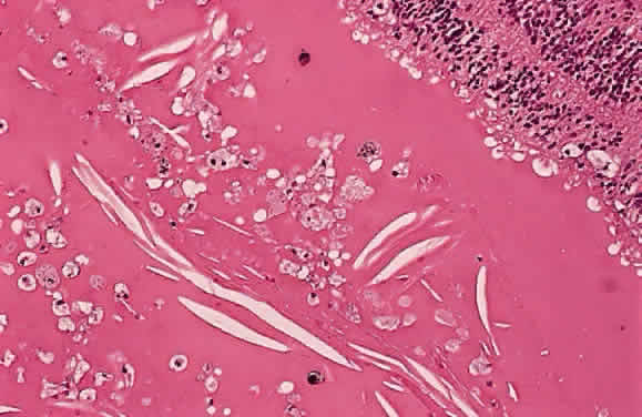 part or all of the retina, and may totally fill the vitreous cavity. The