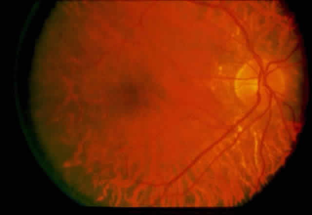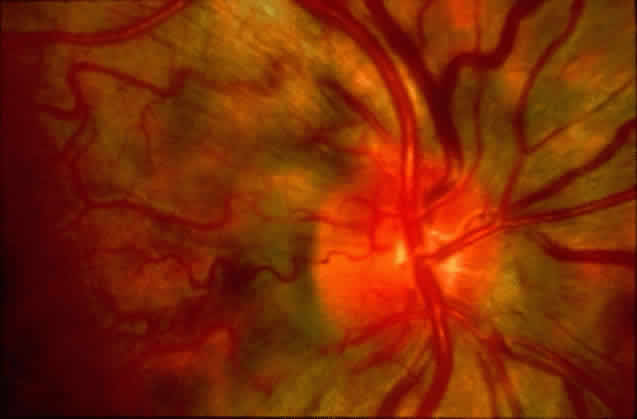 Gyrate atrophy genetics is one of the few examples in ophthalmology of classical forward genetics: that is, the protein defect of the disease (ornithine aminotransferase [OAT]) was known before the chromosomal localization of the causative genes.234–236 An example of a nonophthalmic disease in which classical forward genetics was employed is sickle cell anemia237: the protein (hemoglobin) defect was known before the chromosomal localization of the gene. In the last few decades, however, reverse genetics has become the dominant strategy in modern gene cloning, as demonstrated in the case of CF.1 The gene encoding for OAT has been mapped to chromosome 10q26.238–241 The OAT gene consists of 11 exons and spans 21 kb of genomic DNA and 2.2 kb of mRNA.242 Several mutations in this gene have been identified in patients with gyrate atrophy.236,241–256b There are two types of gyrate atrophy: vitamin B6 (pyridoxine) responsive and vitamin B6 nonresponsive. The first group typically responds to the administration of vitamin B6, which reduces the serum ornithine level. It is still not known why OAT gene mutations preferentially affect ocular tissue, since OAT gene is expressed systemically. LEBER'S HEREDITARY OPTIC NEUROPATHY The molecular genetics of Leber's hereditary optic neuropathy has become a prototypic example of mitochondrial inheritance. With the identification of the underlying molecular defect, this disease has provided a unique opportunity for examining the relationship between DNA mutations and clinical presentation of the disease. Originally described in 1871 by Leber,257 Leber's hereditary optic neuropathy is characterized by rapidly progressive and painless visual loss in first one eye and then, within days to months, the other eye. The disease usually occurs in young men 15 to 30 years of age. Clinically there is mild swelling of the optic disc progressing for a period of weeks to optic atrophy. Small telangiectatic blood vessels can be seen near the optic disc (Fig. 9) that do not leak on intravenous fluorescein angiography. Visual acuity is often 20/200 to counting fingers, and visual field examination typically demonstrates a cecocentral visual field defect. It has been known since Leber's original description of the disease that Leber's hereditary optic neuropathy has a unique maternal transmission pattern: the genetic defect appears to be carried and transmitted from mothers to their children (usually sons), and affected fathers do not transmit the disease gene to their offspring. It was thus speculated that mutations in the mitochondria might be responsible for this disease because mitochondria are passed exclusively from mothers to offspring, not from fathers.