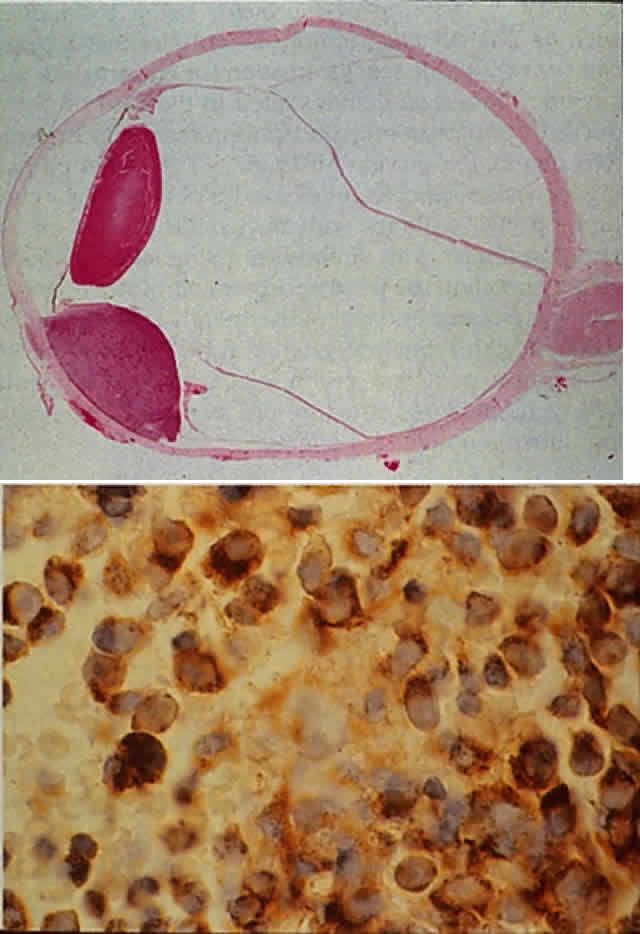 Once mutations are identified, elucidation of their functional significance and their role in retinal degeneration is a more formidable task. There is biochemical evidence that some mutant rhodopsin proteins fail to fold properly, resulting in an accumulation of the protein in the endoplasmic reticulum, leading to photoreceptor degeneration.63 Overexpression of the normal rhodopsin protein is also believed to contribute to the retinal degenerative process.336 There is increased evidence that photoreceptor cell death occurring in diseases such as retinitis pigmentosa is not the direct result of primary mutational events as described above. Rather, these various mutational events may converge and funnel into a common pathway of cell death, such as apoptosis. Apoptosis, or programmed cell death, is a process by which damaged cells are removed. The purpose of apoptosis is for self-protection of the organism. There is evidence that photoreceptor degeneration seen in retinitis pigmentosa may indeed involve programmed cell death. For example, cone photoreceptor death has been observed in addition to rod degeneration in retinitis pigmentosa, where the primary mutational event is rhodopsin gene mutation.88 There is evidence that photoreceptors containing the wild type and mutant rhodopsin genes degenerate simultaneously.337 The rapid progress in the elucidation of the fundamental molecular events involved in retinitis pigmentosa will no doubt have a significant impact on the clinical management of these patients. For example, recognition of a common cellular degenerative pathway such as apoptosis may suggest powerful new methods of therapeutic intervention. RETINOBLASTOMA The study of the molecular biology of retinoblastoma has led to the recent development of an entirely new concept in human cancer genetics: the tumor-suppressor gene. Retinoblastoma has become the prototypic example of tumors caused by mutations in tumor-suppressor genes and has significantly increased our understanding of the molecular mechanisms of tumorigenesis. Retinoblastoma is the most frequent malignant neoplasm of the eye in childhood, occurring in approximately 1 of 20,000 live births (Fig. 16). It has both familial and sporadic forms: 6% of the patients have a family history of the disease; the remaining 94% have the sporadic cases.338 Approximately 30% of the sporadic cases are caused by new germline mutations, whereas the remaining 70% are due to somatic mutations. Bilateral retinoblastoma is considered to be hereditary (arising from either an inherited mutation or a new germline mutation). However, a unilateral retinoblastoma still has a 20% chance of being hereditary (i.e., new or old germline mutations).
