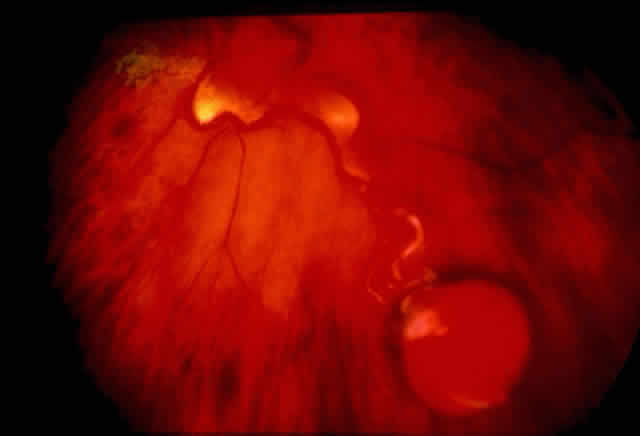 In recent years, significant progress has been made with regard to the molecular biology of this disease. A gene predisposing persons to von Hippel-Lindau disease was mapped to chromosome 3p25-p26 and was subsequently cloned.411 The von Hippel-Lindau disease gene appears to be another tumor-suppressor gene, and loss of the function of the protein leads to tumorigenesis. Alteration of the von Hippel-Lindau gene, including rearrangements and deletions, were found in 28 of 221 von Hippel-Lindau kindreds. The von Hippel-Lindau gene is evolutionarily conserved and encodes two transcripts with molecular weights of approximately 6 and 6.5 kb. The partial sequence of the inferred gene product shows no homology to other proteins, except for an acidic repeat domain found in the procyclic surface membrane glycoprotein of Trypanosoma brucei. Based on clinical findings of vascular abnormalities, it has been speculated that the von Hippel-Lindau protein may be part of the structural component for blood vessel walls.412 X-LINKED RETINOSCHISIS X-linked retinoschisis is a bilateral ocular disease occurring in males. Clinical findings include separation of the nerve fiber layer from the outer retinal layers in the retinal periphery, with the development of nerve fiber-layer breaks occurring most frequently in the inferotemporal quadrant of the fundus. Posterior pole findings include cystoid foveal changes, with retinal folds that radiate from the center of the foveal configuration (petaloid pattern). Unlike the cysts of cystoid macular edema, however, cystoid changes in the X-linked retinoschisis do not stain on fluorescein angiography.413,413a-d The chromosomal locus for the X-linked retinoschisis has been mapped to Xp22.2-p22.1.53,413e Allelic heterogeneity may account for the wide spectrum of clinical presentation of this disease. Differential diagnoses include retinopathy of prematurity, Goldmann-Fabre disease, retinitis pigmentosa, FEVR, Norrie's disease, and Stickler's syndrome. Further molecular characterization of these diseases may aid in their clinical differentiation. |