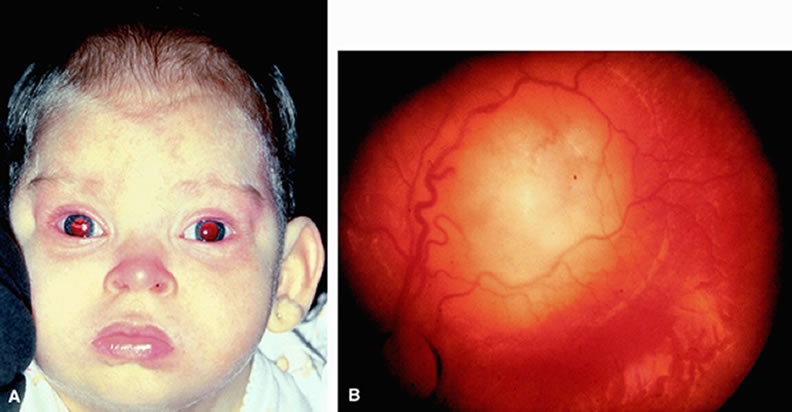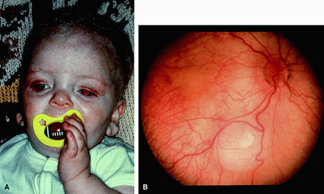 SECOND PRIMARY TUMORS Another important aspect of genetic counseling concerns the development of new unrelated cancers in survivors of bilateral or heritable retinoblastoma. It is now recognized that a child with retinoblastoma has approximately a 5% chance of developing another malignancy during the first 10 years of follow-up, 18% during the first 20 years, and 26% within 30 years.10 The 30-year cumulative incidence is about 35% for those patients who received radiation therapy (external beam therapy) as compared with an incidence rate of 6% for those patients who did not receive radiation. Therefore, patients with bilateral retinoblastoma have an increased incidence of second tumors, and this rate is further increased in those treated with external radiation therapy.10 Osteogenic sarcoma, often involving the femur, is most common, but other tumors such as spindle cell sarcoma, chondrosarcoma, rhabdomyosarcoma, neuroblastoma, glioma, leukemia, sebaceous cell carcinoma, squamous cell carcinoma, and malignant melanoma have also been recognized.9,10,42,43 The mean latency period for the appearance of the second primary is approximately 13 years.10 NEUROBLASTIC INTRACRANIAL MALIGNANCY (TRILATERAL RETINOBLASTOMA) It has recently been recognized that there is a high incidence of neuroblastic intracranial malignancy in patients with the hereditary form of retinoblastoma, most often manifesting as pinealoblastoma or other parasellar tumors.44 The pinealoblastoma is identical to retinoblastoma from an embryologic, pathologic, and immunologic standpoint.45–48 This association of midline intracranial pineal tumors and suprasellar and parasellar neuroblastic tumors with bilateral retinoblastoma has been termed trilateral retinoblastoma.49,50 The retinoblastoma gene is believed to confer an increased susceptibility to developing these intracranial tumors.49,50 Trilateral retinoblastoma is found in approximately 3% of all children with retinoblastoma.47,48 Those patients with bilateral or familial disease are at greatest risk, with 5% to 15% developing these tumors.47,48 In one case from our series, the intracranial tumor preceded the diagnosis of retinoblastoma by 5 months.47 It is possible that many cases of pinealoblastoma were previously misinterpreted as metastatic retinoblastoma to the brain.46,49 Unlike the other second tumors mentioned previously, the pinealoblastoma usually occurs during the first4 years of life.48 It is usually fatal. The possibility of pinealoblastoma should be included in the genetic counseling of patients with hereditary retinoblastoma. Newer evidence suggests that recent treatment methods of systemic chemoreduction for retinoblastoma may prevent trilateral retinoblastoma.51,52 In a study of nearly 100 patients with hereditary retinoblastoma, trilateral retinoblastoma was found in no patient who received chemoreduction and it would be expected for 5 to 15 patients in this group to manifest the associated brain tumor.52 Thus, prevention of trilateral retinoblastoma may be possible. | ||||||||||||||||||||||||||||||||||||||||||||||